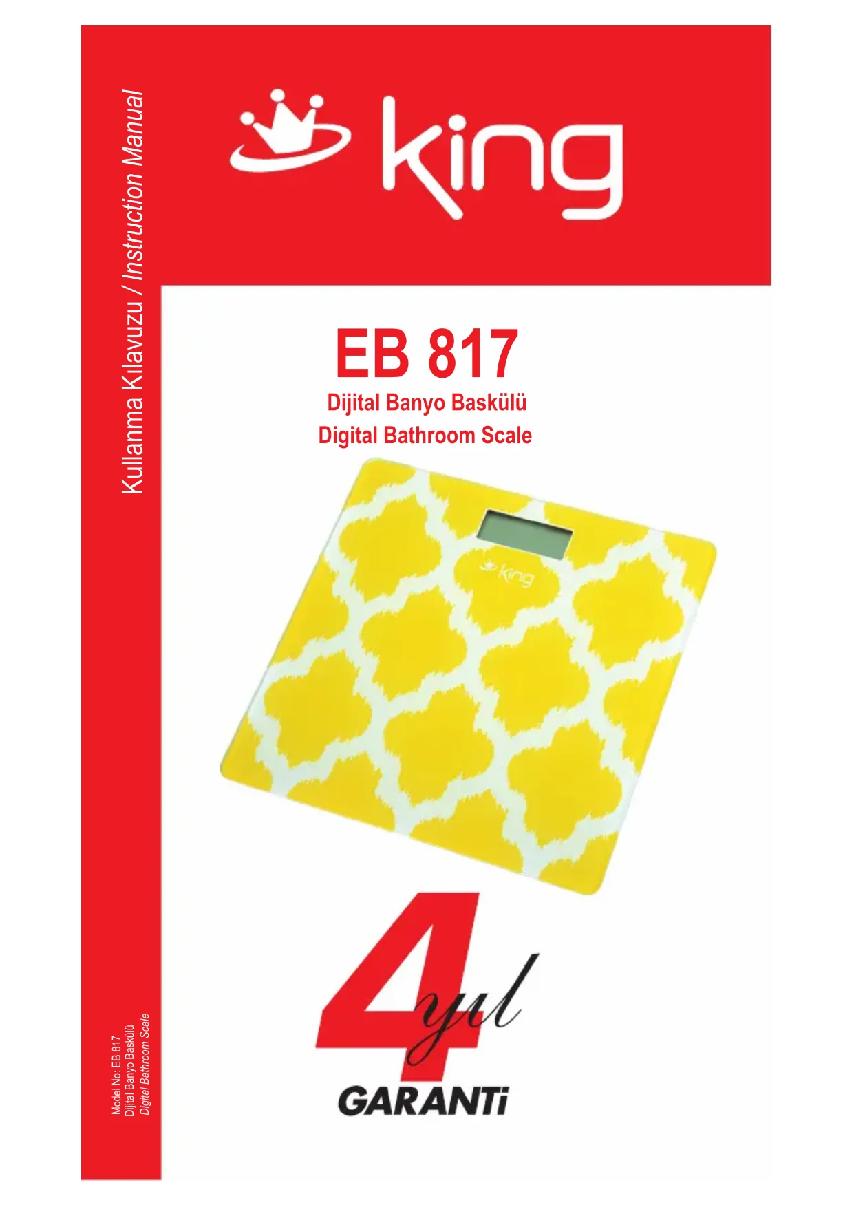 Téléchargez la notice de votre Balance au format PDF gratuitement ! Retrouvez votre notice EB817 - KING et reprennez votre appareil électronique en main. Sur cette page sont publiés tous les documents nécessaires à l'utilisation de votre appareil EB817 de la marque KING.