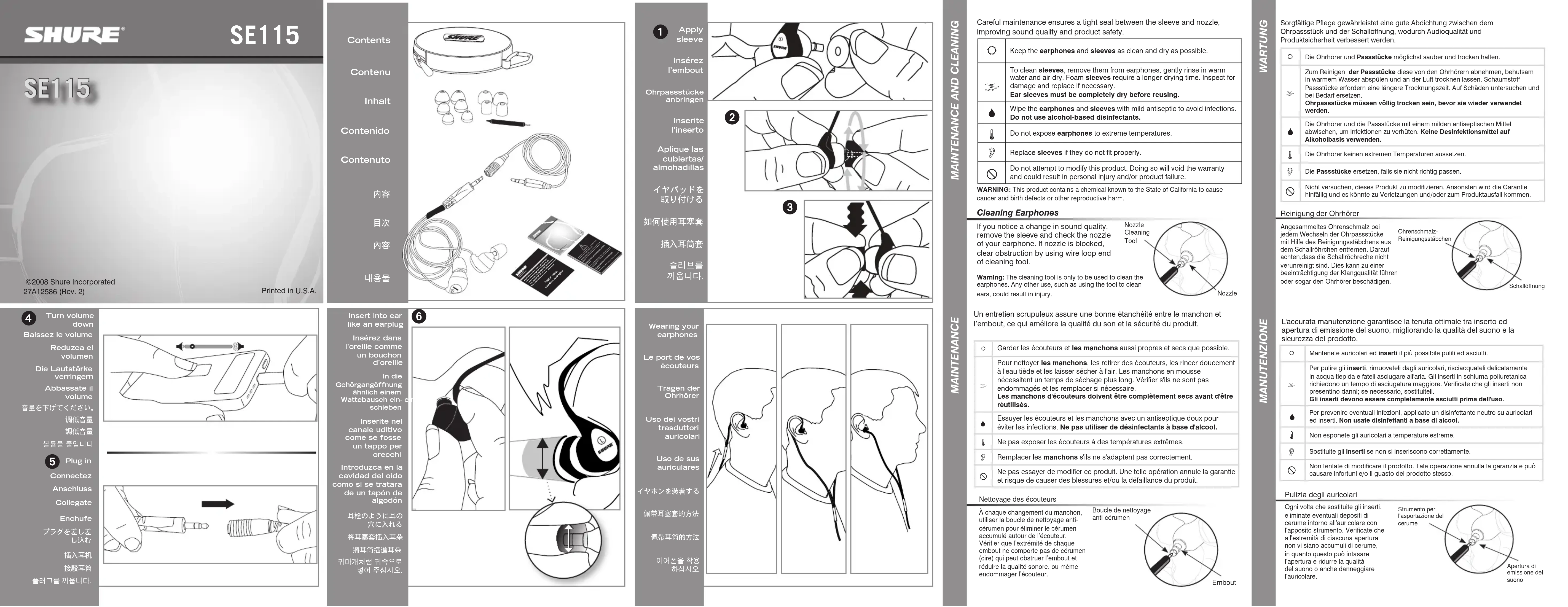 Retrouvez gratuitement la notice de l'appareil SE115RD SHURE au format PDF.