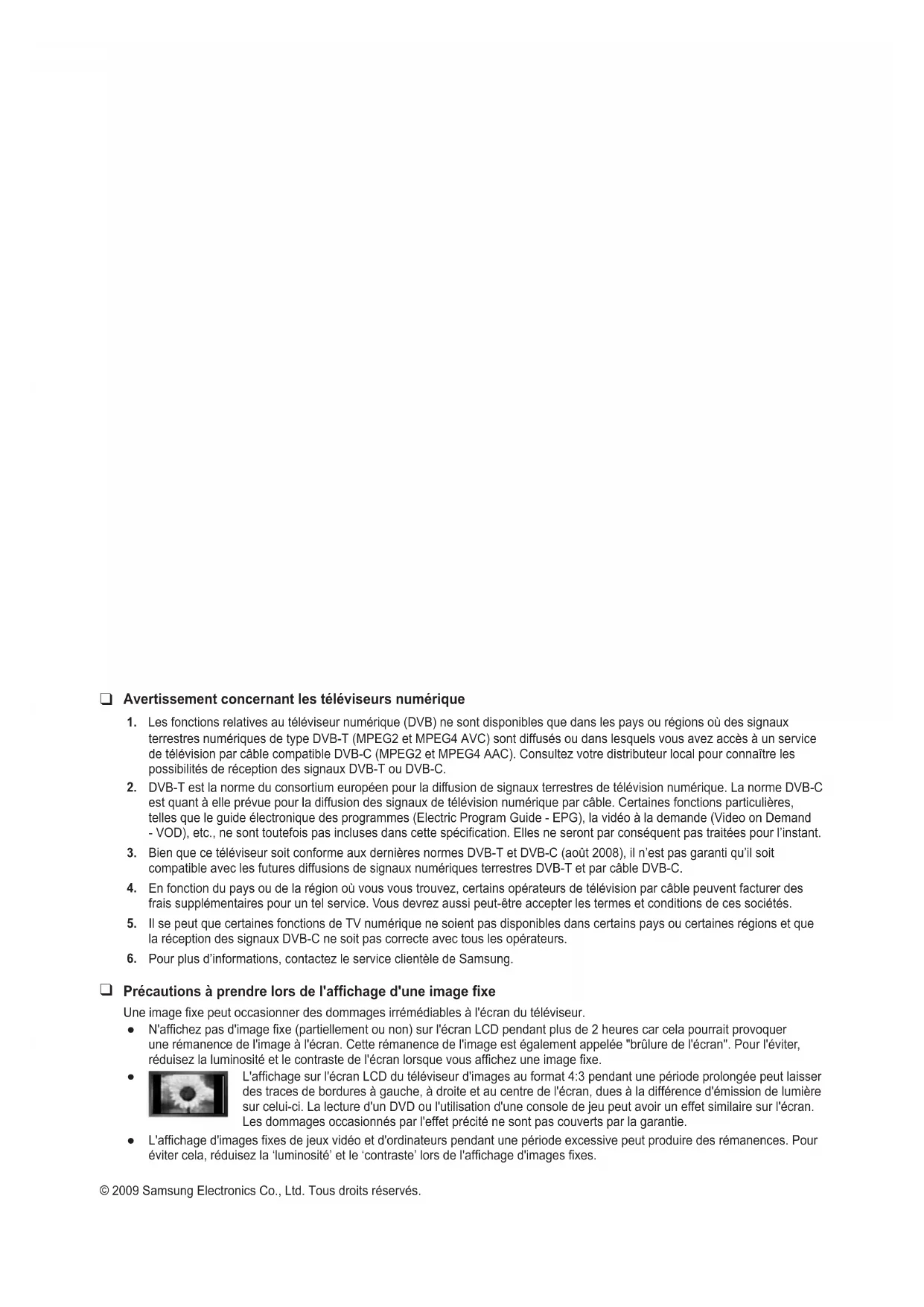 L'afchage d'images xes de jeux vidéo et d'ordinateurs pendant une période excessive peut produire des rémanences. Pour