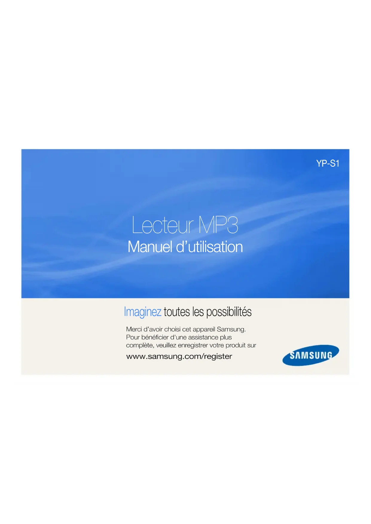 YP-S1 Merci d’avoir choisi cet appareil Samsung. Pour bénéficier d'une assistance plus complète, veuillez enregistrer votre produit sur www.samsung.com/register