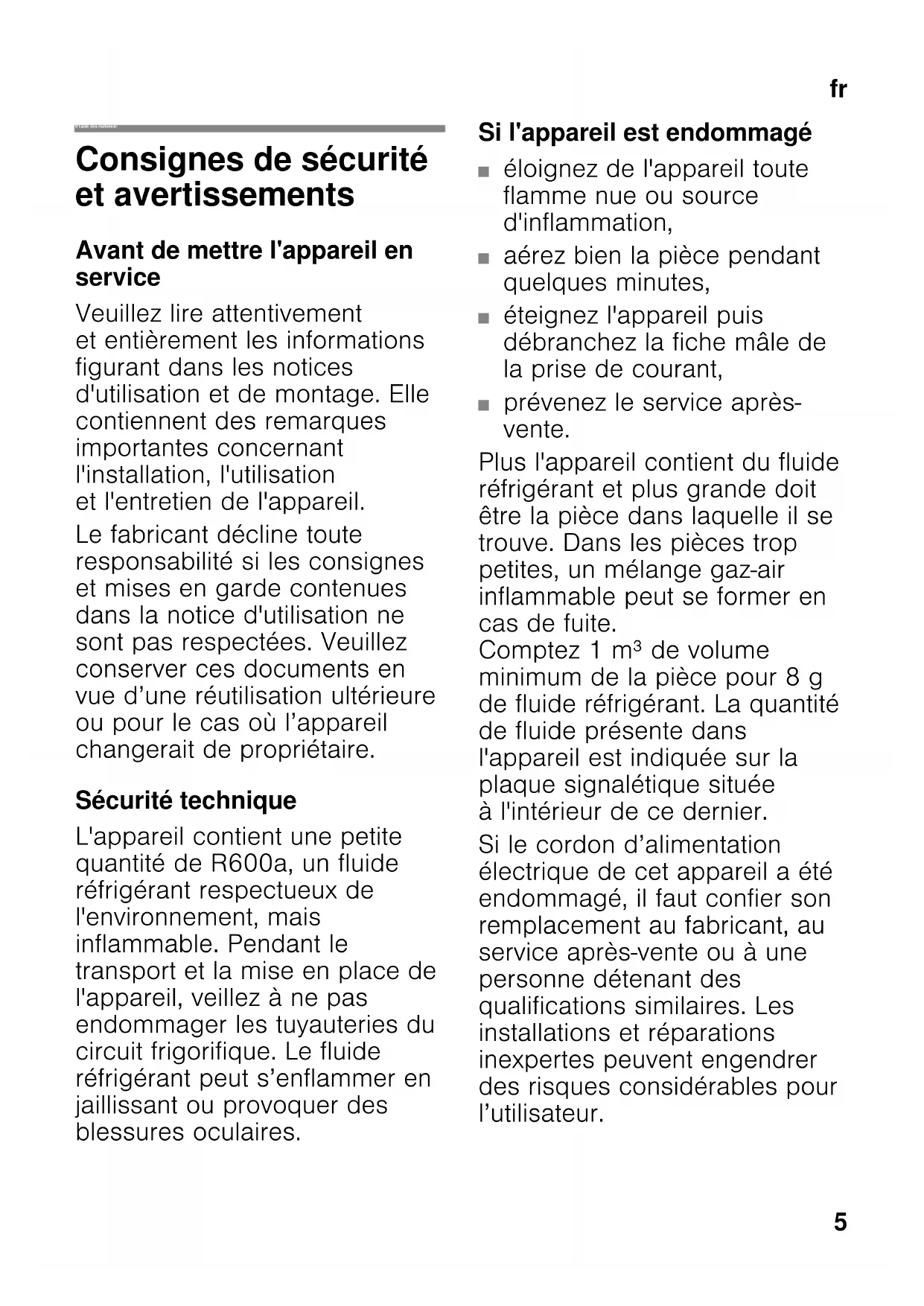 quantité de R600a, un fluide