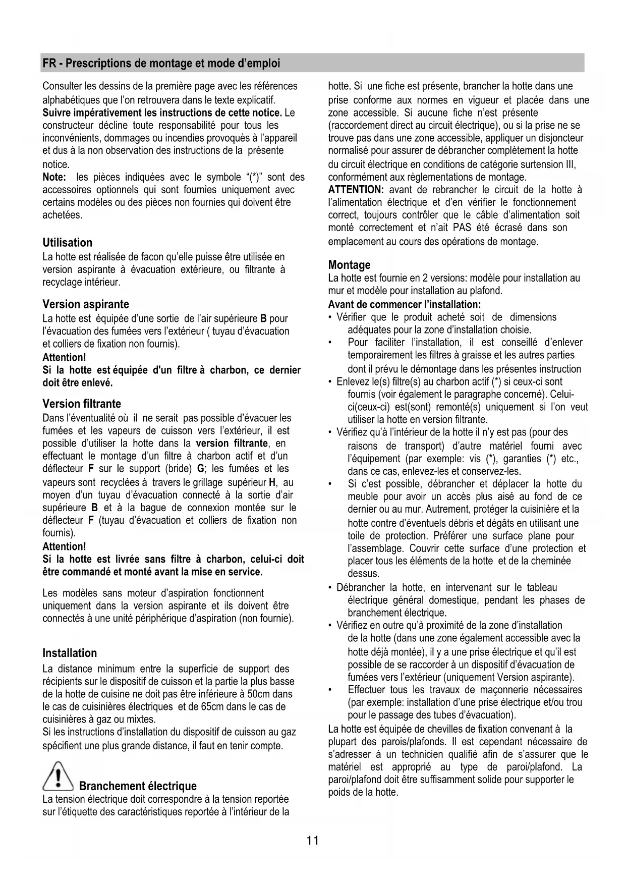 FR - Prescriptions de montage et mode d’emploi