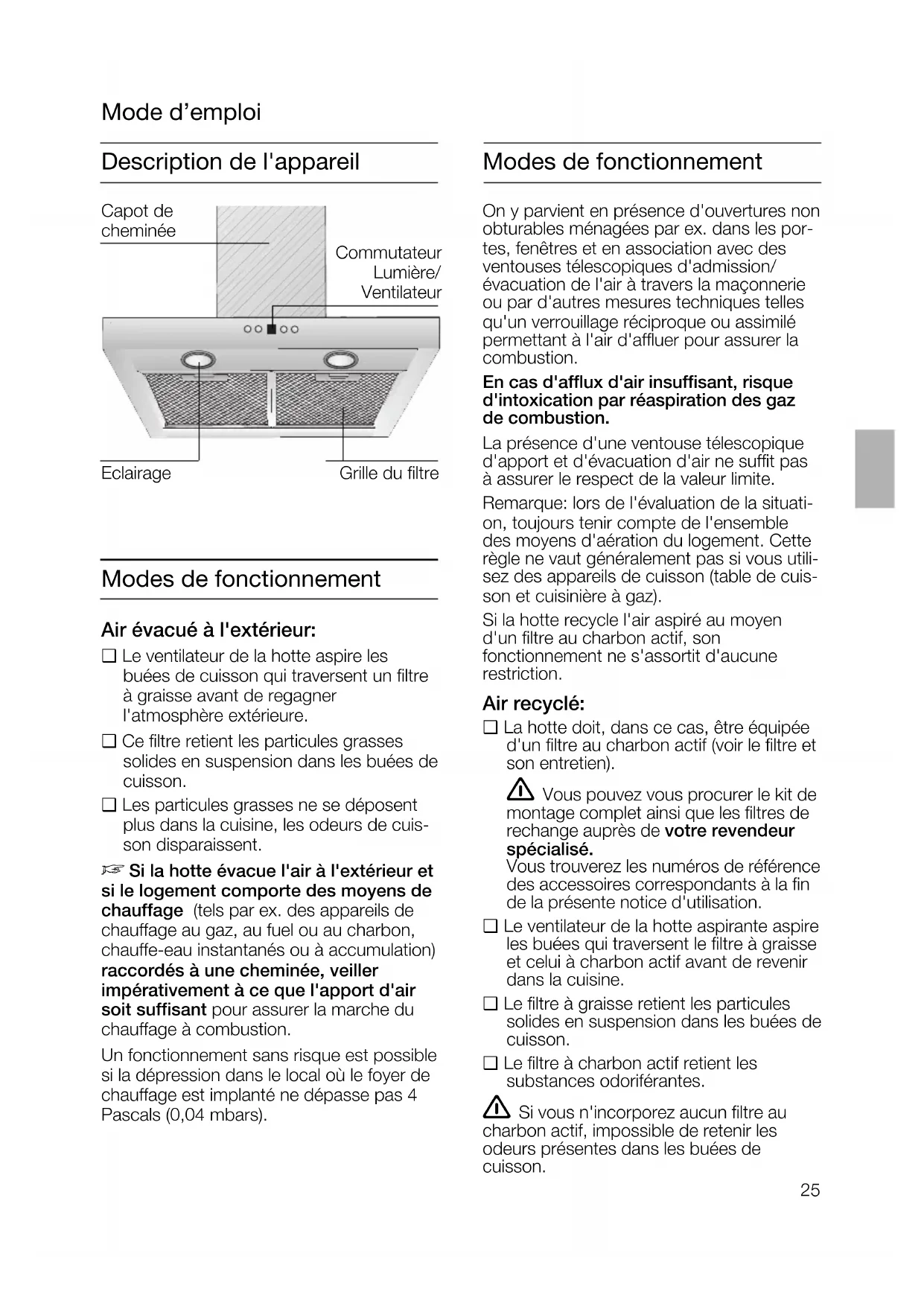 de la hotte aspirante.