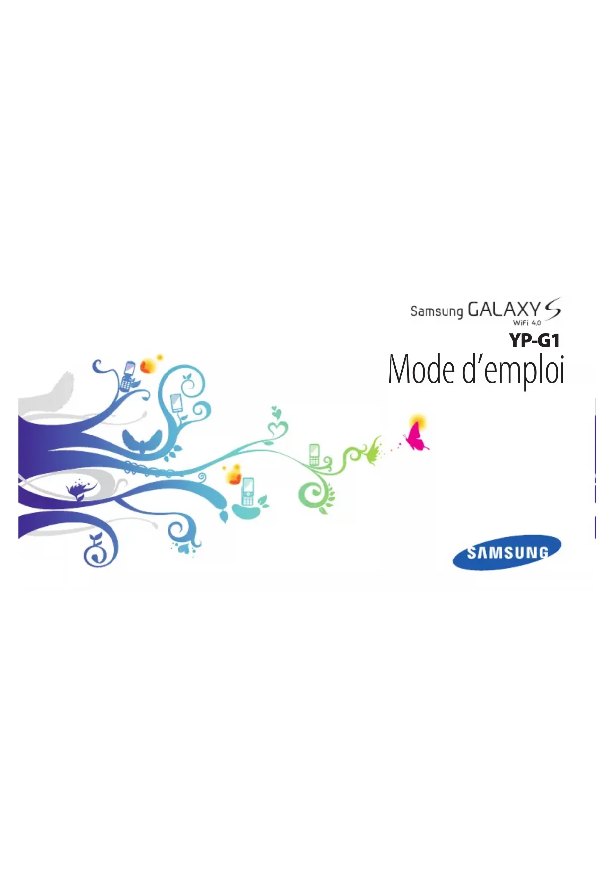 d’emploi Nous vous remercions de la conance que vous nous accordez en achetant cet appareil Samsung YP-G1. Il vous permettra d’accéder à des divertissements exceptionnels, basés sur les critères de qualité et sur la technologie de Samsung.Ce mode d’emploi a été conçu spécialement pour vous permettre de découvrir les fonctions et caractéristiques de votre appareil. À lire avant toute utilisation Veuillez lire attentivement ce mode d’emploi avant d’utiliser •votre appareil, an de l’utiliser en toute sécurité.Les explications fournies dans ce mode d’emploi sont basées • sur les paramètres par défaut de l’appareil.Les illustrations utilisées dans ce mode d’emploi peuvent • diérer par rapport à l’aspect réel du produit.Le contenu de ce mode d’emploi peut diérer en fonction • du produit et votre version logicielle et peut faire l’objet de modications sans préavis. Pour obtenir la version la plus récente de ce mode d’emploi, connectez-vous sur www.samsung.com.Les fonctions disponibles et les services supplémentaires • peuvent varier en fonction de votre version logicielle.La mise en forme et la distribution de ce mode d’emploi sont • basées sur les systèmes d’exploitation Android et peuvent varier en fonction du système d’exploitation de l’utilisateur.Les applications et leurs fonctions peuvent varier en fonction •de votre région ou des caractéristiques du matériel. Samsung n’est pas responsable des problèmes de performance relatifs aux applications fournies par des tiers.Samsung n’est pas responsable des problèmes de • performance ou des incompatibilités découlant de la modication des paramètres de registre par l’utilisateur.Vous pouvez mettre à jour le logiciel de votre appareil en vous •connectant sur le site www.samsung.com.Utilisation de ce mode d’emploi