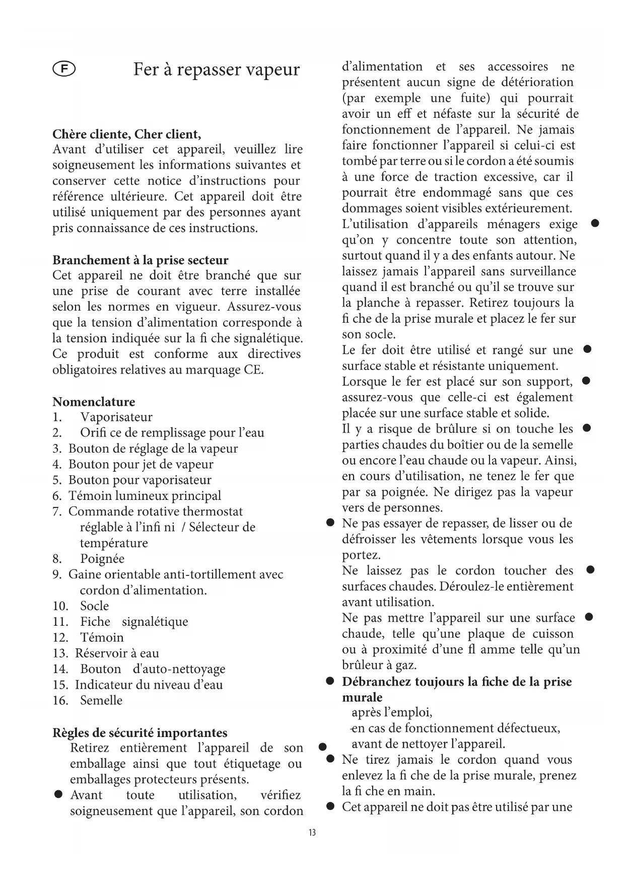 12Fer à repasser vapeur