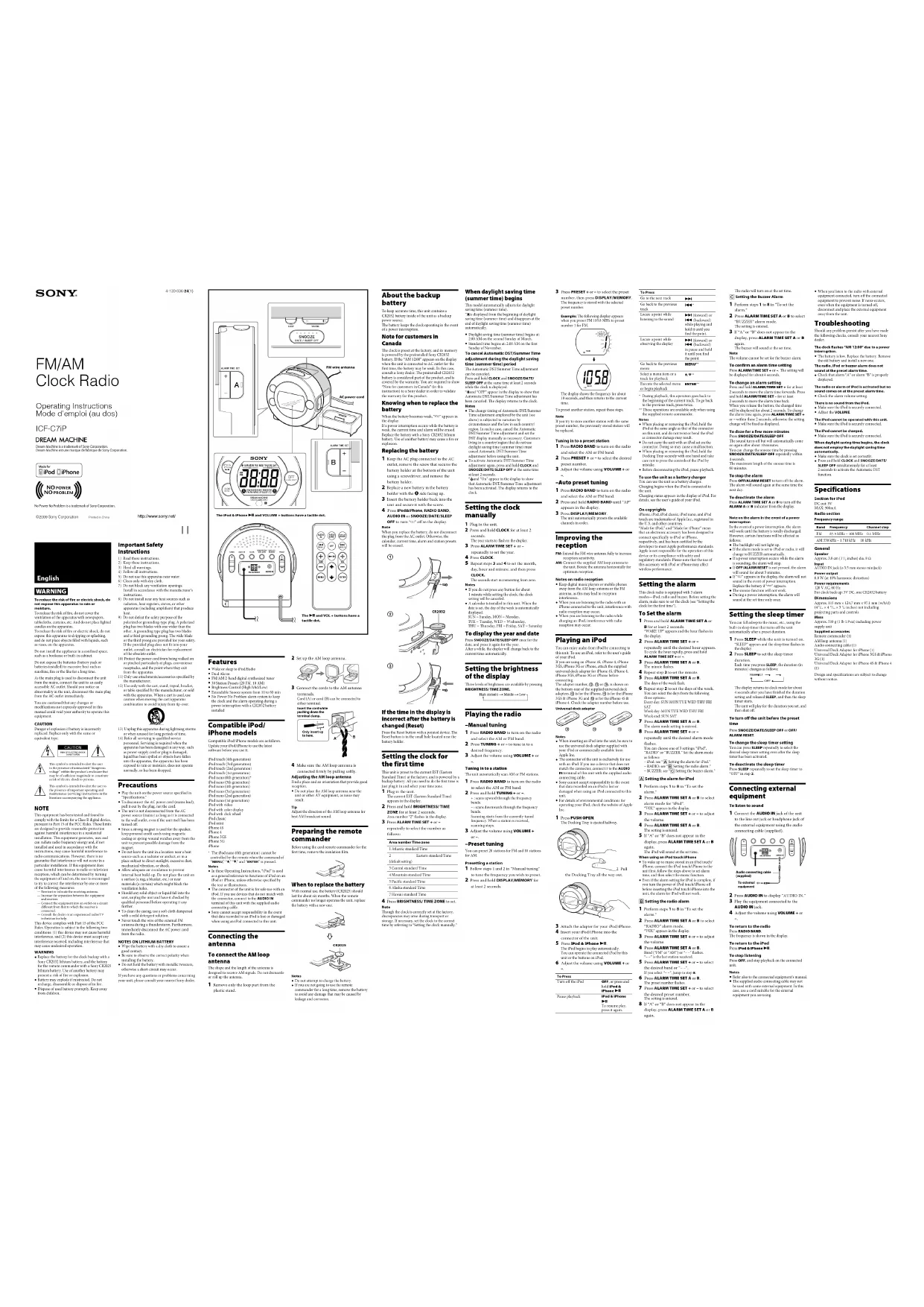 ICFC7iP - Radio SONY - Notice d'utilisation et mode d'emploi gratuit