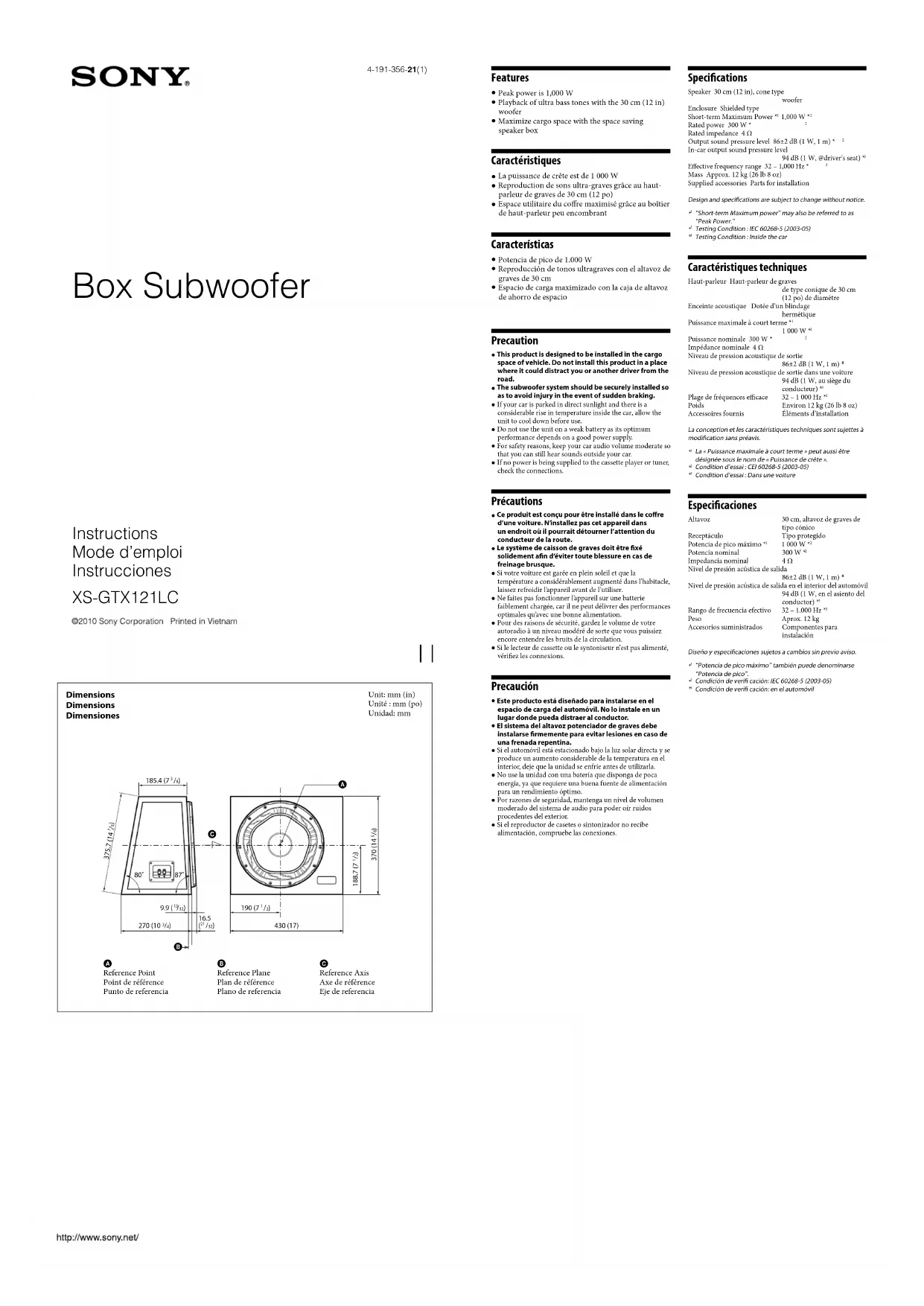 Retrouvez gratuitement la notice de l'appareil XSGTX121LC SONY au format PDF.