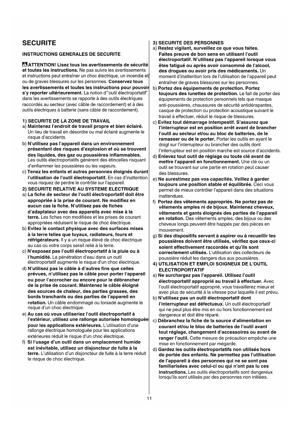 SECURITE INSTRUCTIONS GENERALES DE SECURITE ATTENTION! Lisez tous les avertissements de sécurité