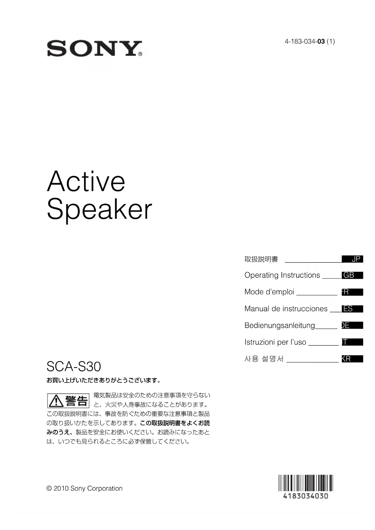 SCAS30 - Haut-parleur SONY - Notice d'utilisation et mode d'emploi gratuit