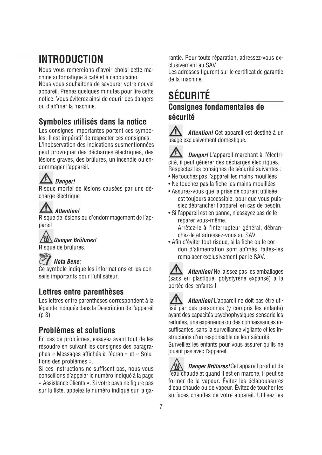 Consignes fondamentales de sécurité7