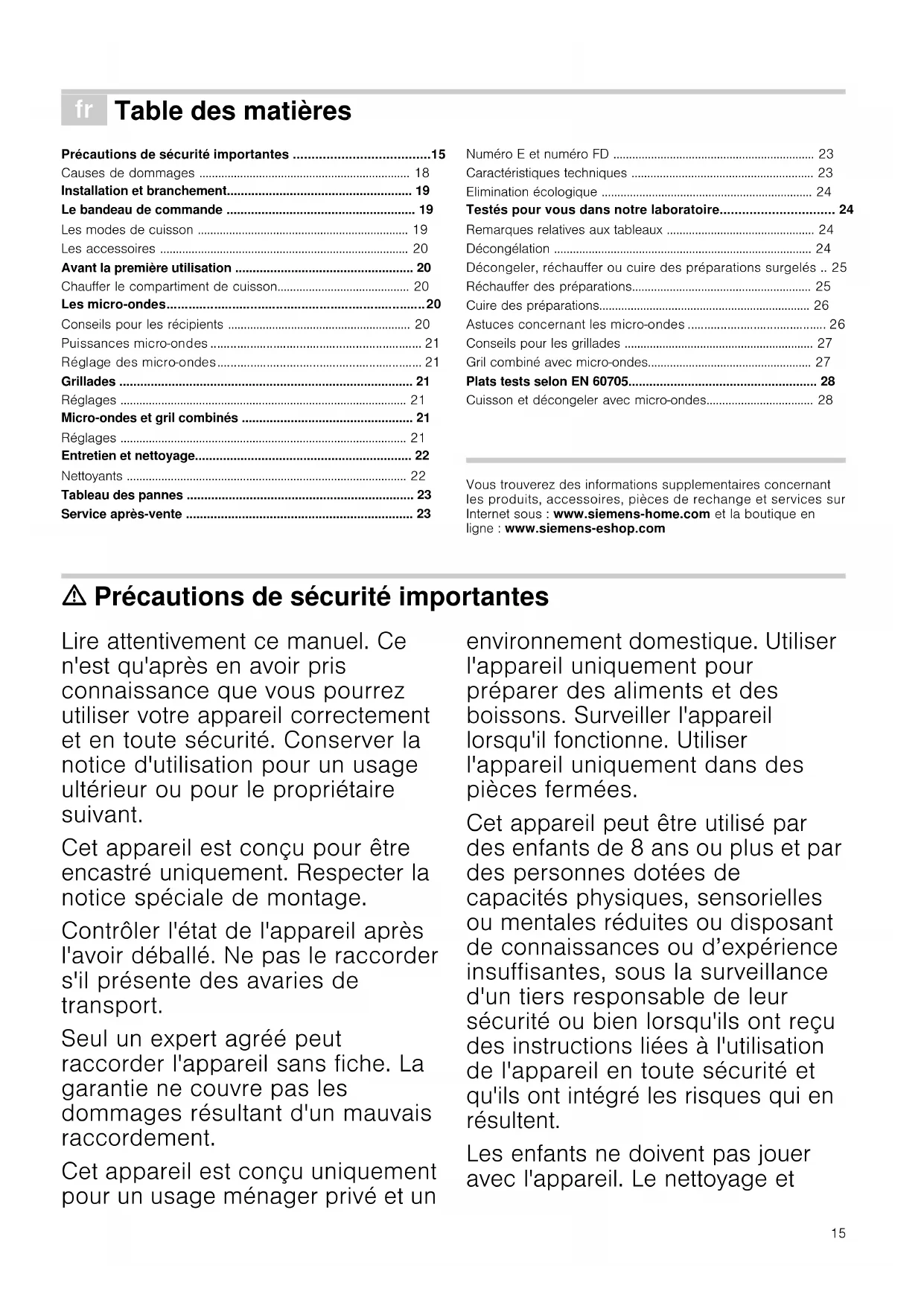 Þ Table des matières [fr]Mode d’emploi Précautions de sécurité importantes 15