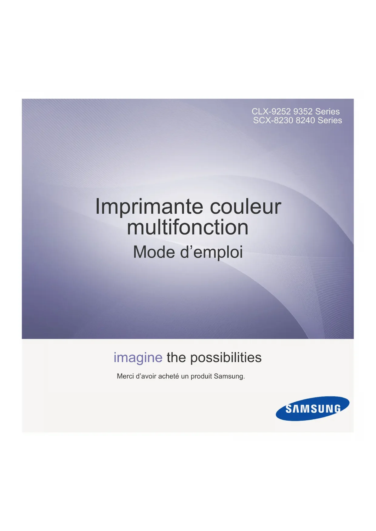 CLX-9252 9352 Series SCX-8230 8240 Series Imprimante couleur multifonction Mode d’emploi imagine the possibilities Merci d’avoir acheté un produit Samsung.Table des matières_ 2 Table des matières COPYRIGHT