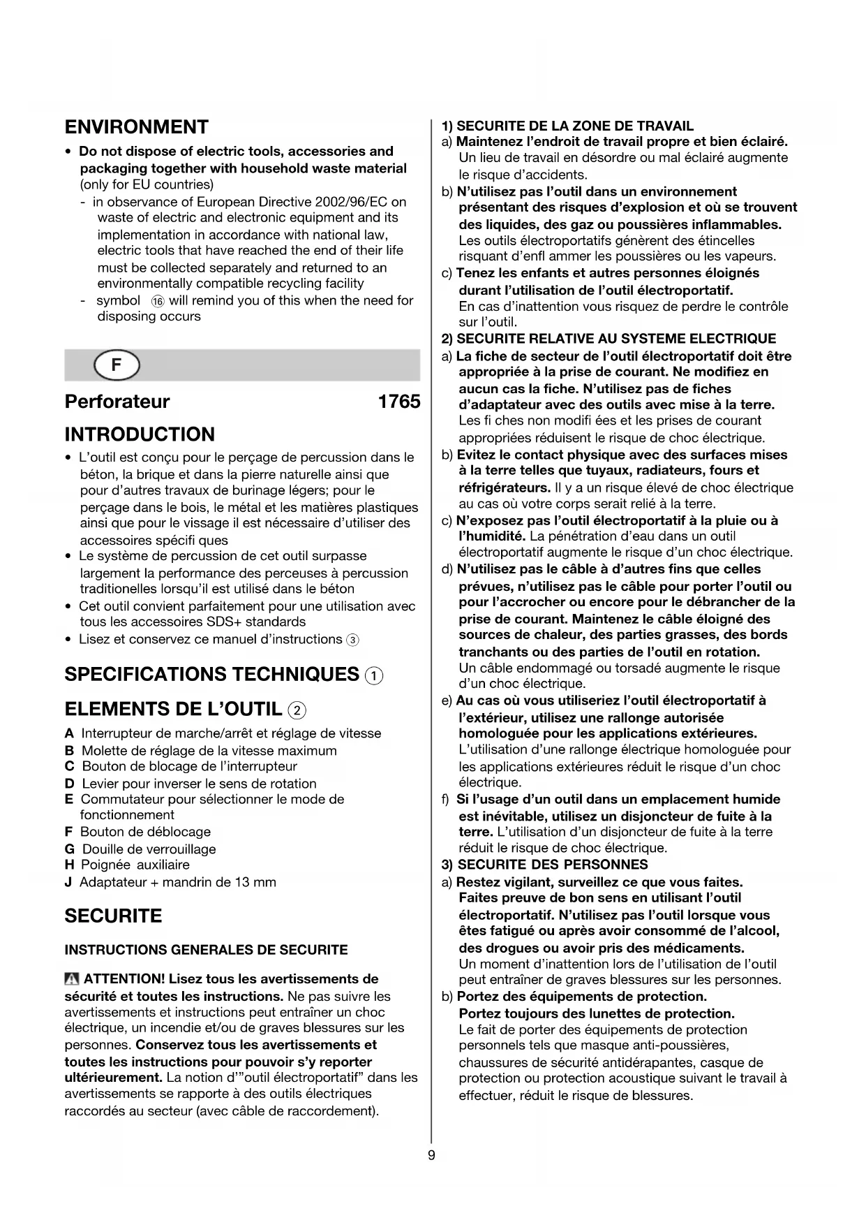 MODE D'EMPLOI 1765 MA SKIL