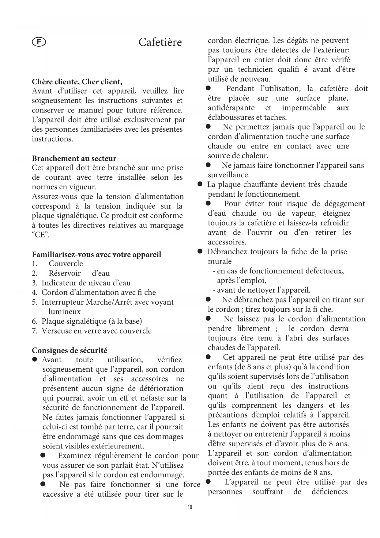 Pendant l’utilisation, la cafetière doit