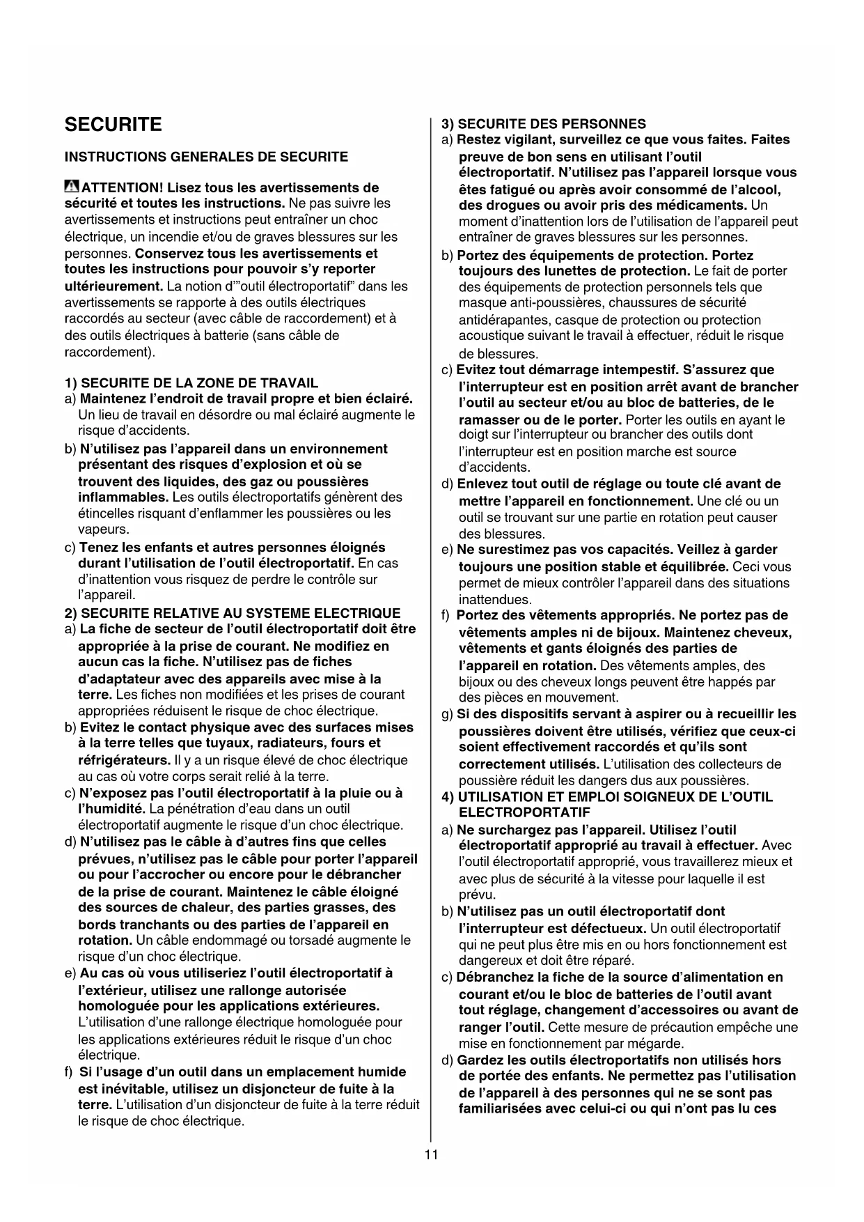 SECURITE INSTRUCTIONS GENERALES DE SECURITE ATTENTION! Lisez tous les avertissements de