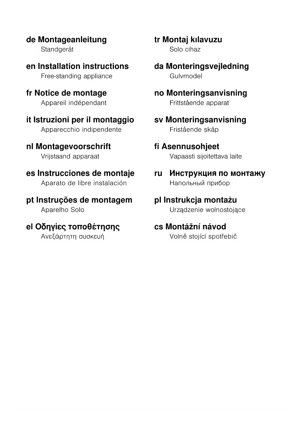Free-standing appliance
