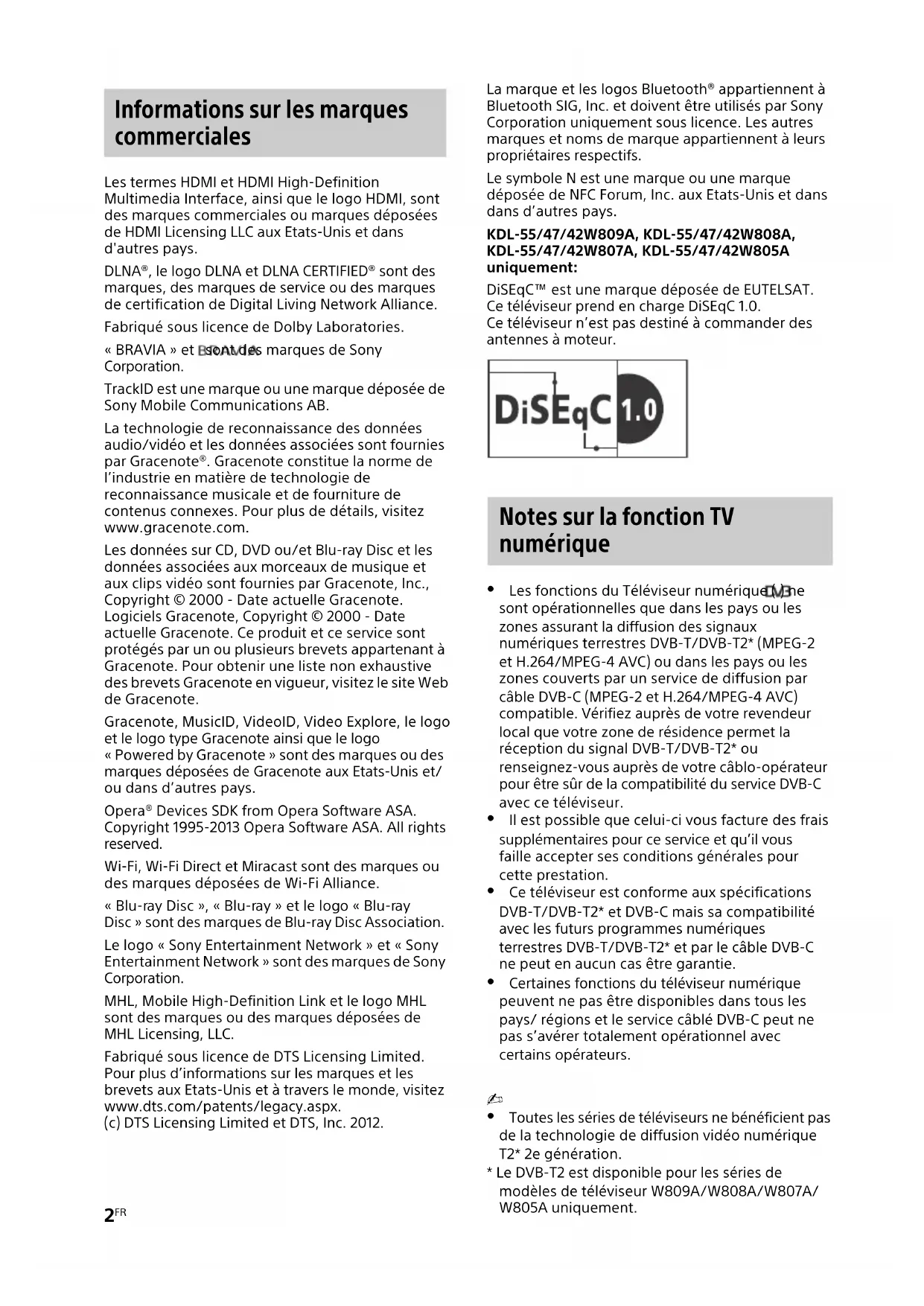 « BRAVIA » et sont des marques de Sony