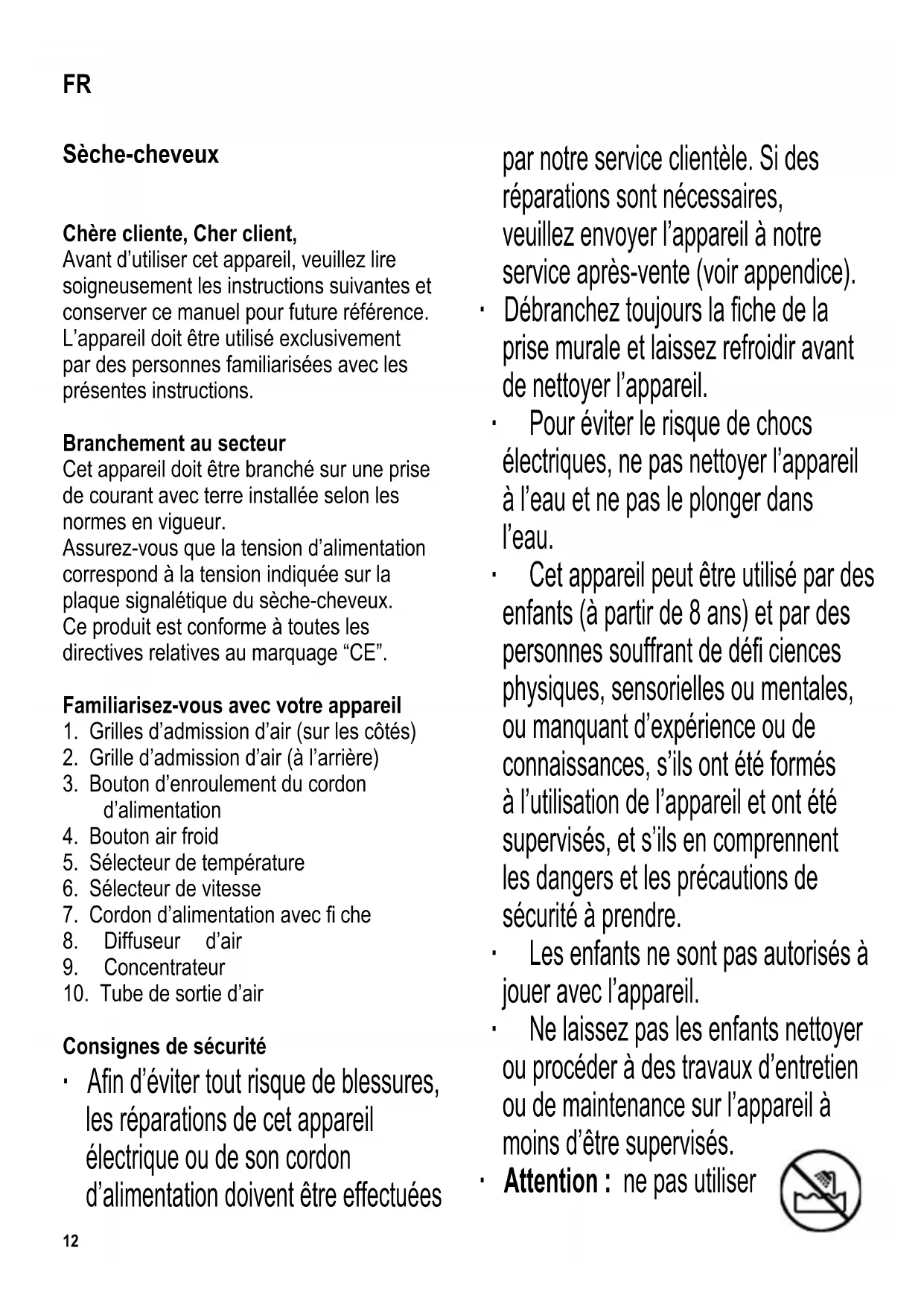 HT 0139 - Sèche-cheveux SEVERIN - Notice d'utilisation et mode d'emploi gratuit