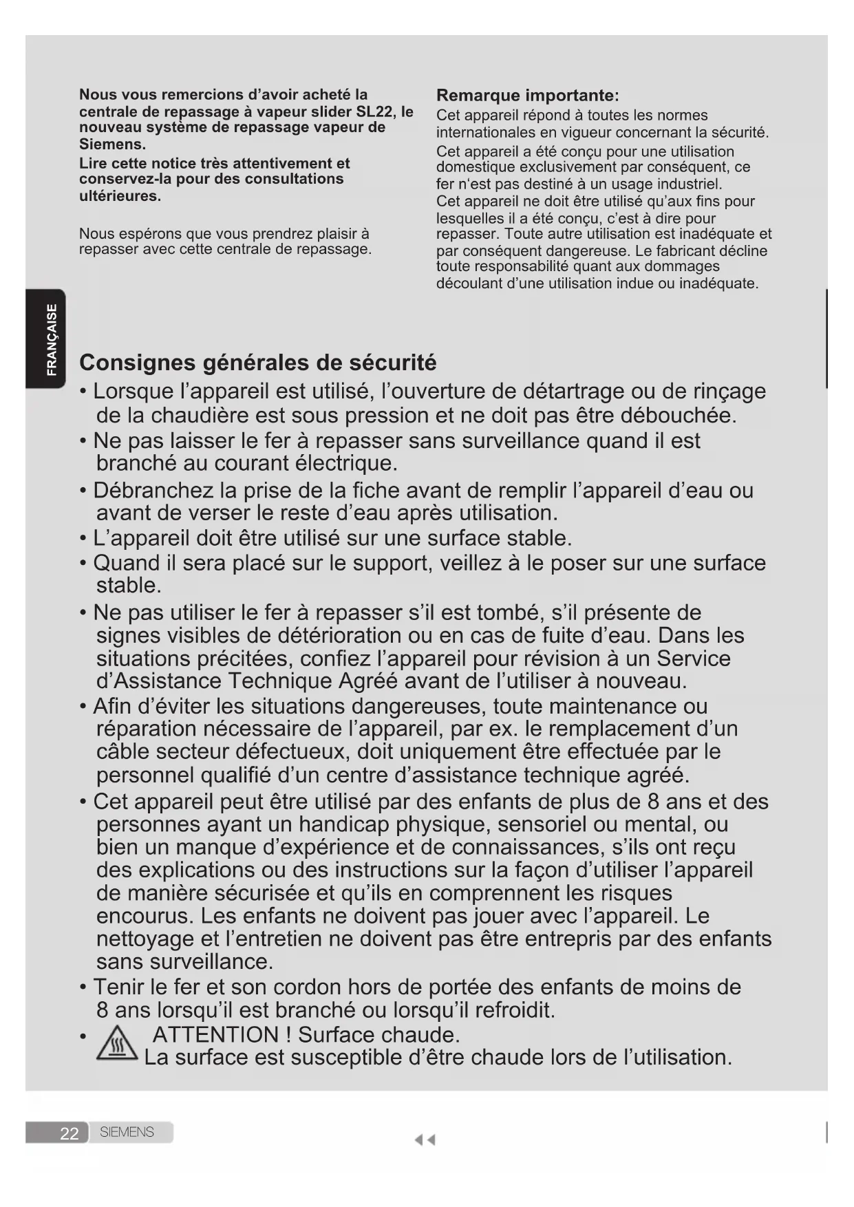 S I E M E N S FRANÇAISE Nous vous remercions d’avoir acheté la