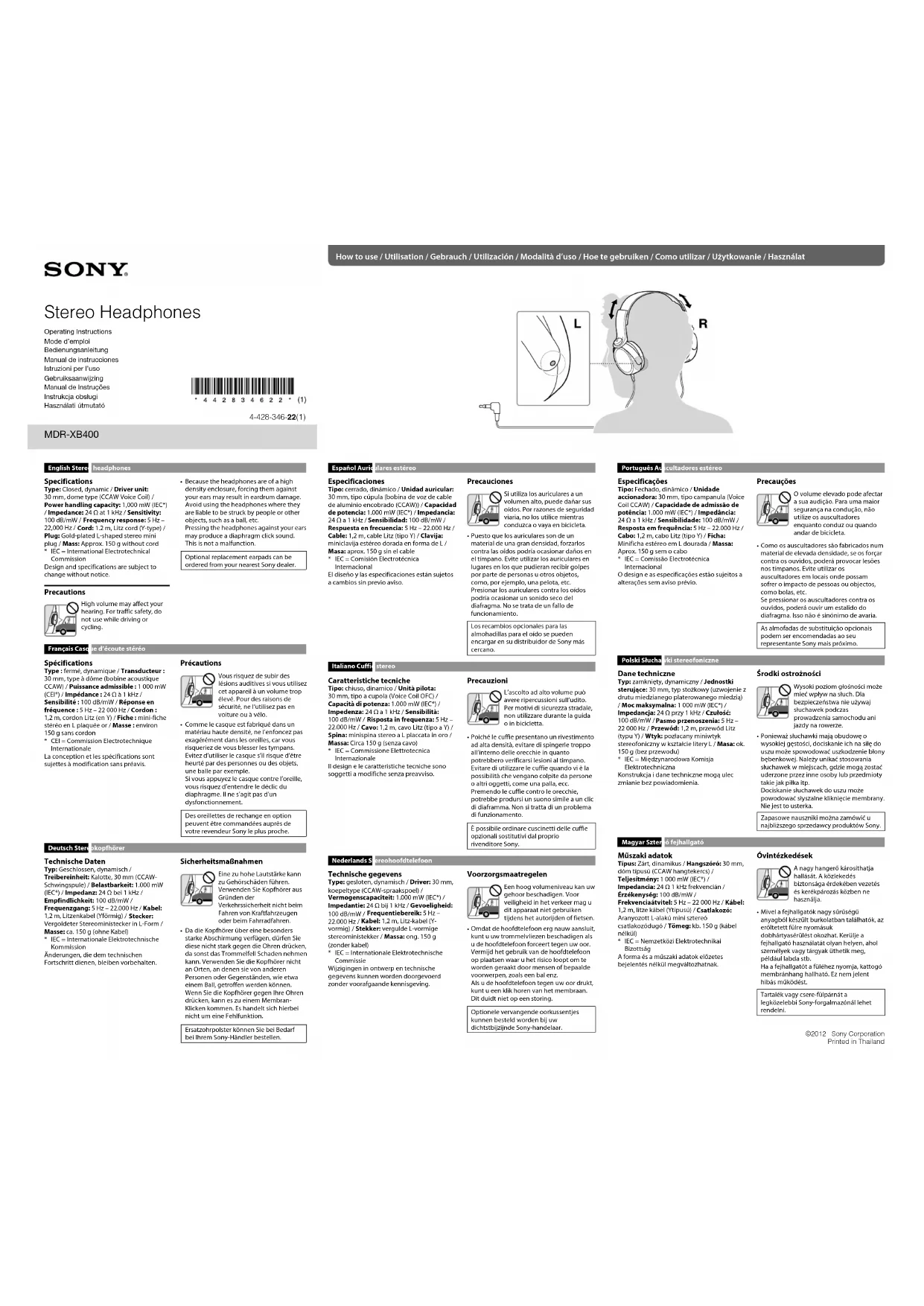 Retrouvez gratuitement la notice de l'appareil MDRXB400 SONY au format PDF.
