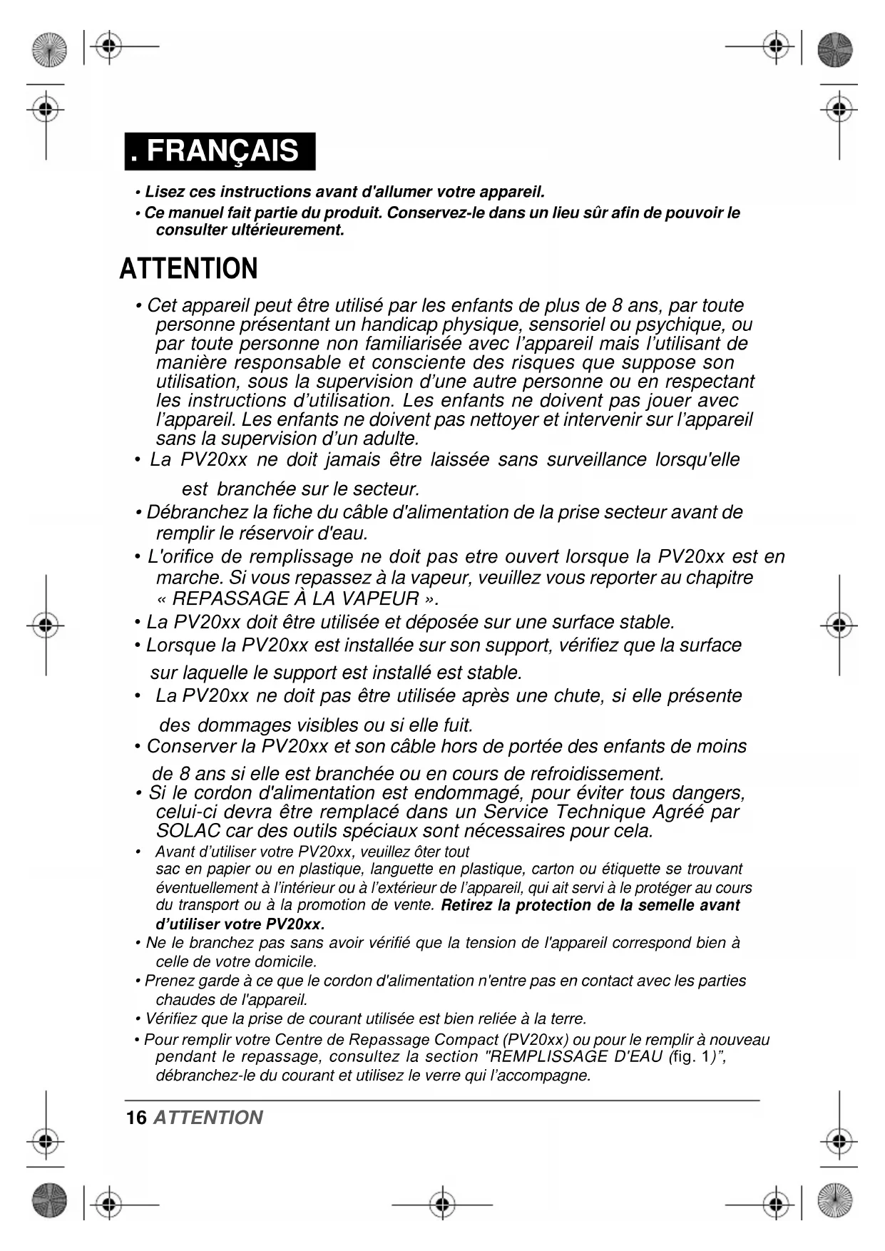 PV2015 - Fer à repasser SOLAC - Notice d'utilisation et mode d'emploi gratuit
