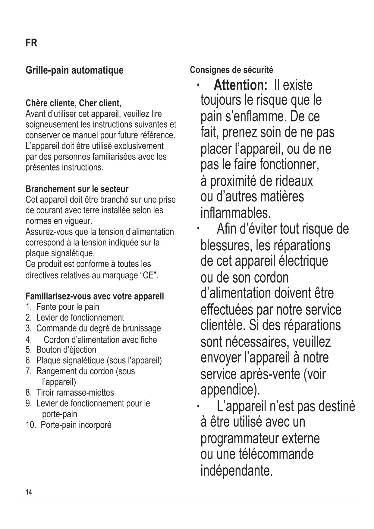 AT 2287 - Grille-pain SEVERIN - Notice d'utilisation et mode d'emploi gratuit