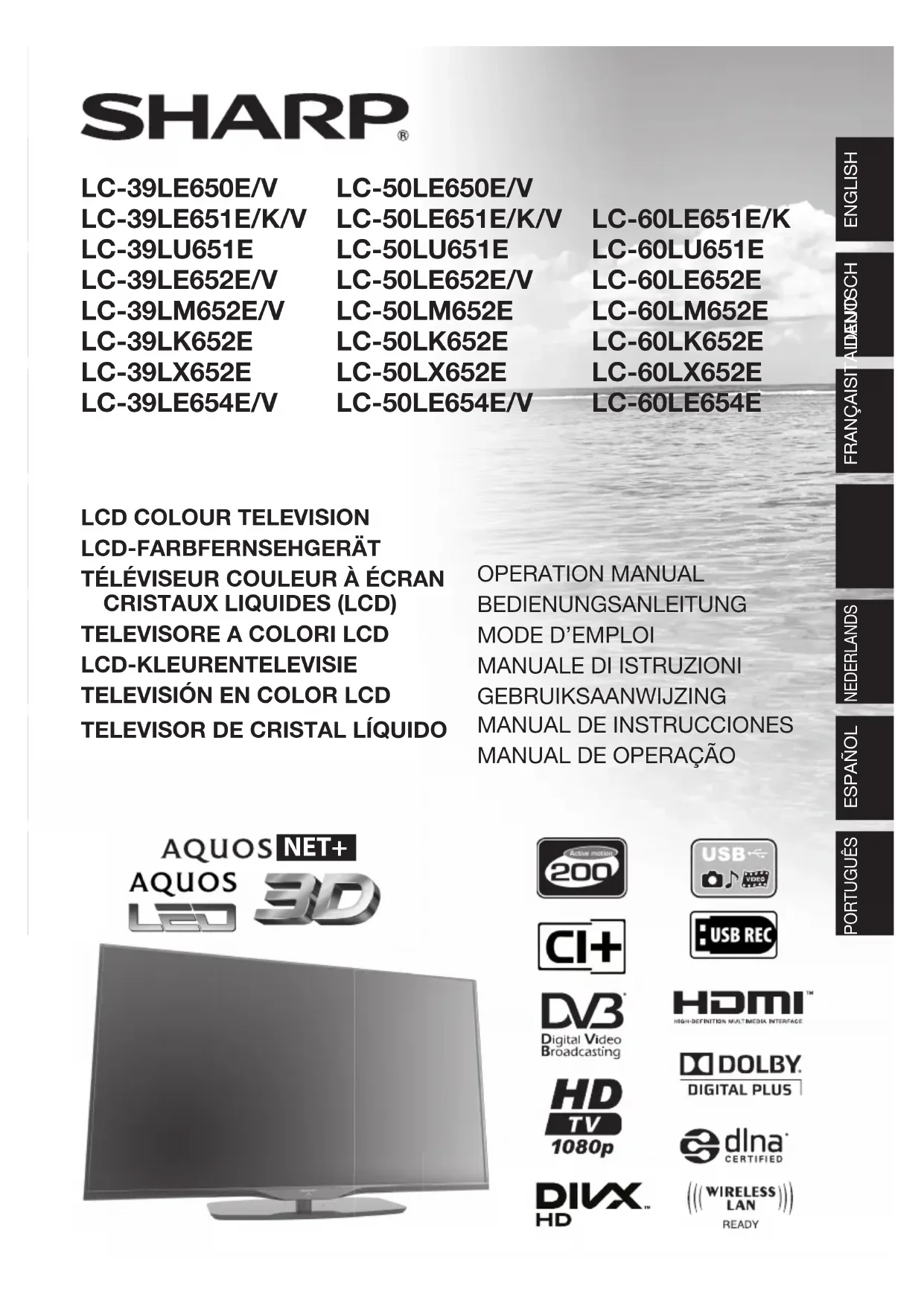 LC50LE650V - Téléviseur SHARP - Notice d'utilisation et mode d'emploi gratuit