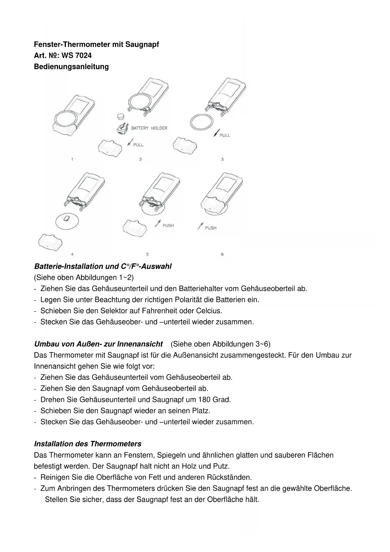 WS 7024 - Thermomètre TECHNOLINE - Notice d'utilisation et mode d'emploi gratuit