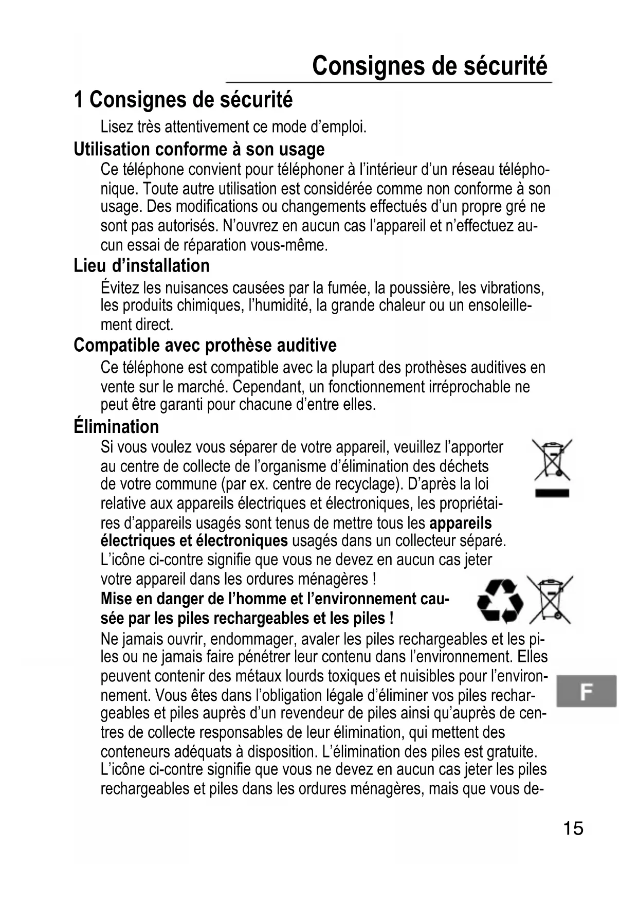 1 Consignes de sécurité