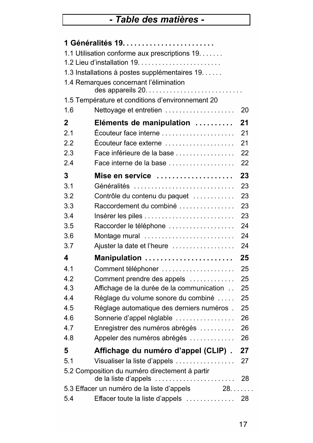 5.4 Effacer toute la liste d’appels 28. . . . . . . . . . . . . .− Table des matières −