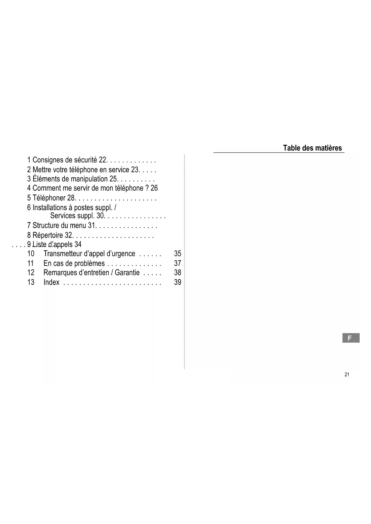 La page 30 vous donnera de plus amples informations au cas où vous désiriez raccorder votre téléphone à une installation à postes supplémentaires.