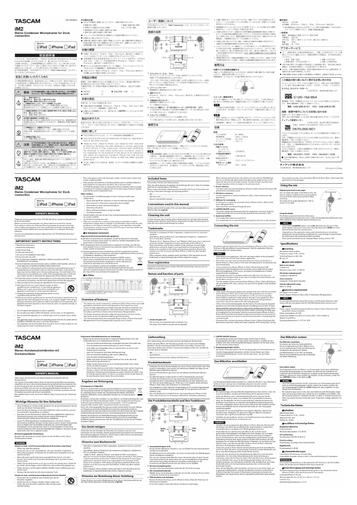 iM2 - Microphone TASCAM - Notice d'utilisation et mode d'emploi gratuit