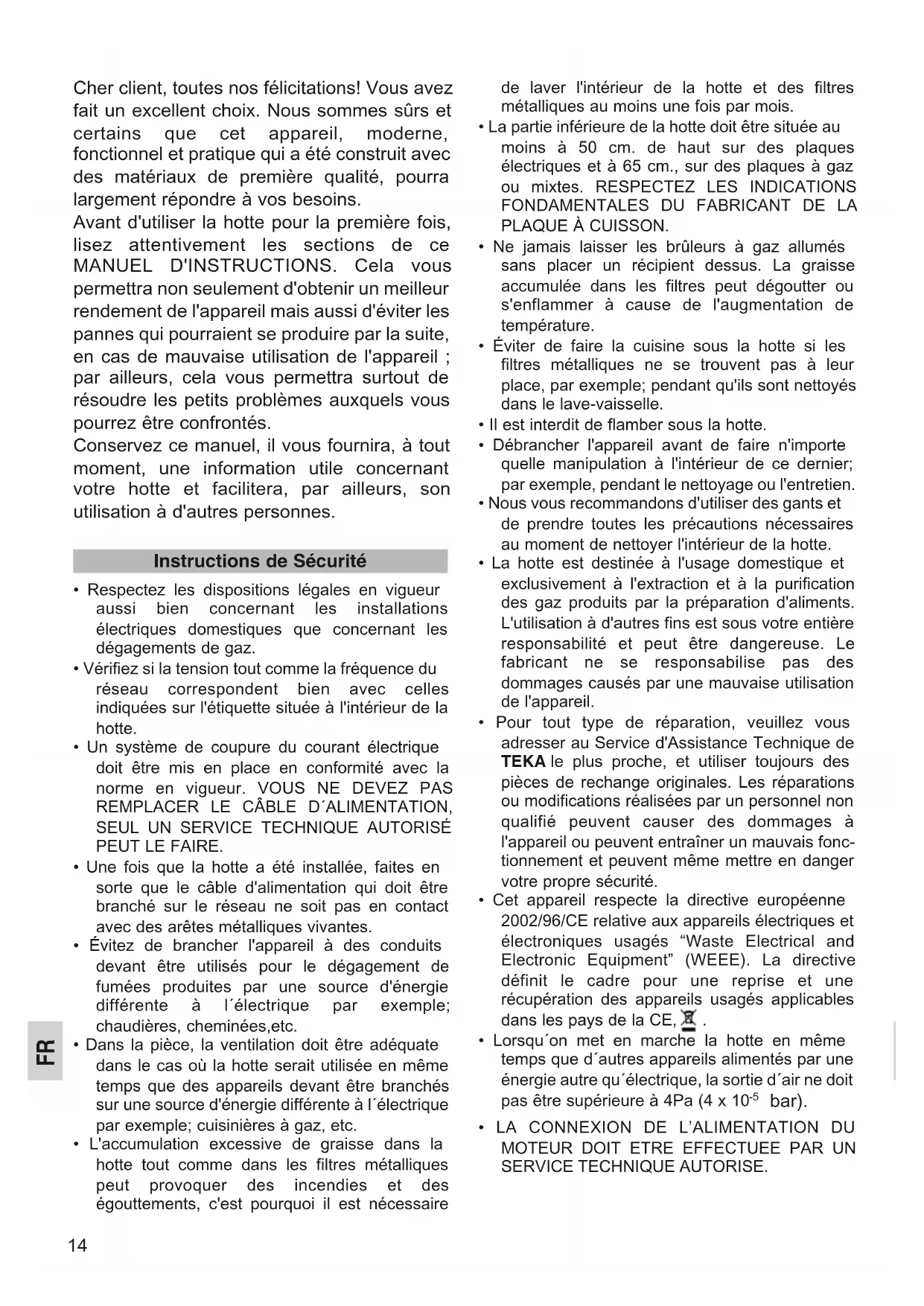 de Sécurité indiquées à la page 14 au