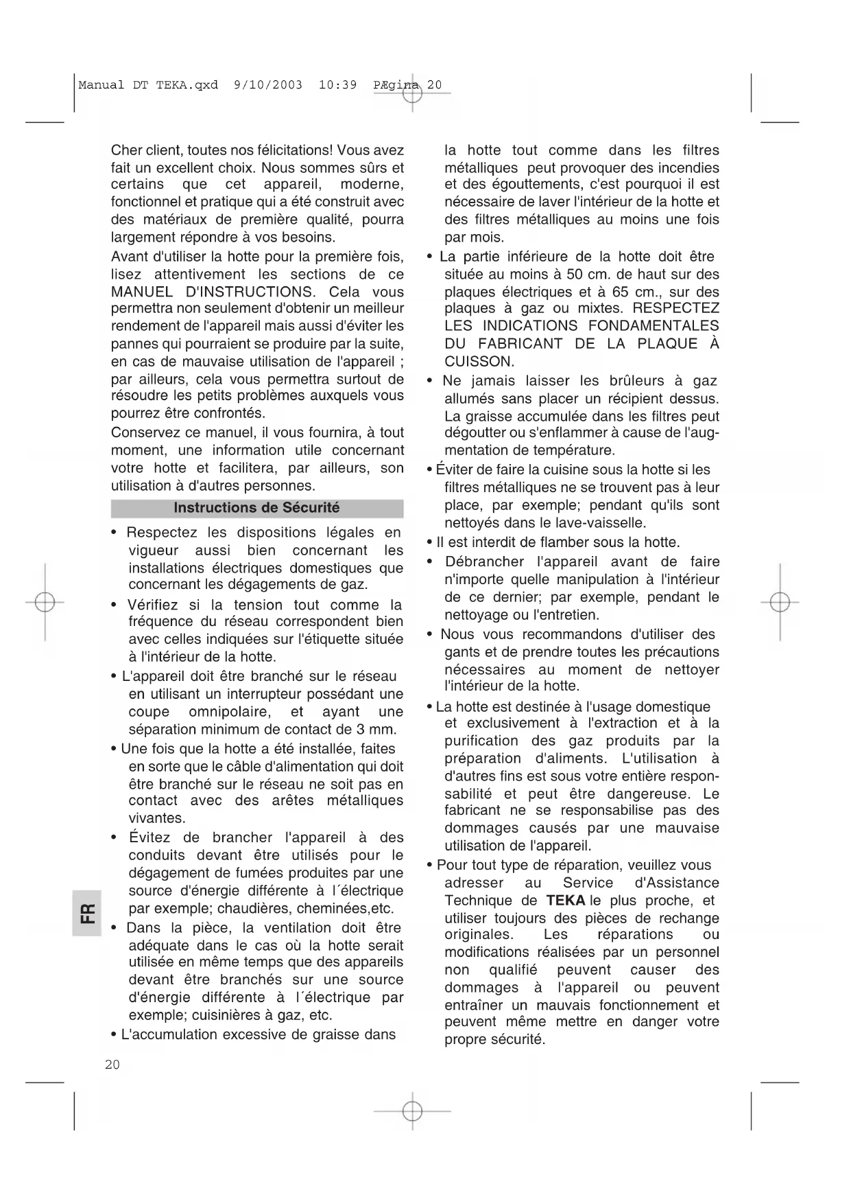 DT 90 - Hotte TEKA - Notice d'utilisation et mode d'emploi gratuit