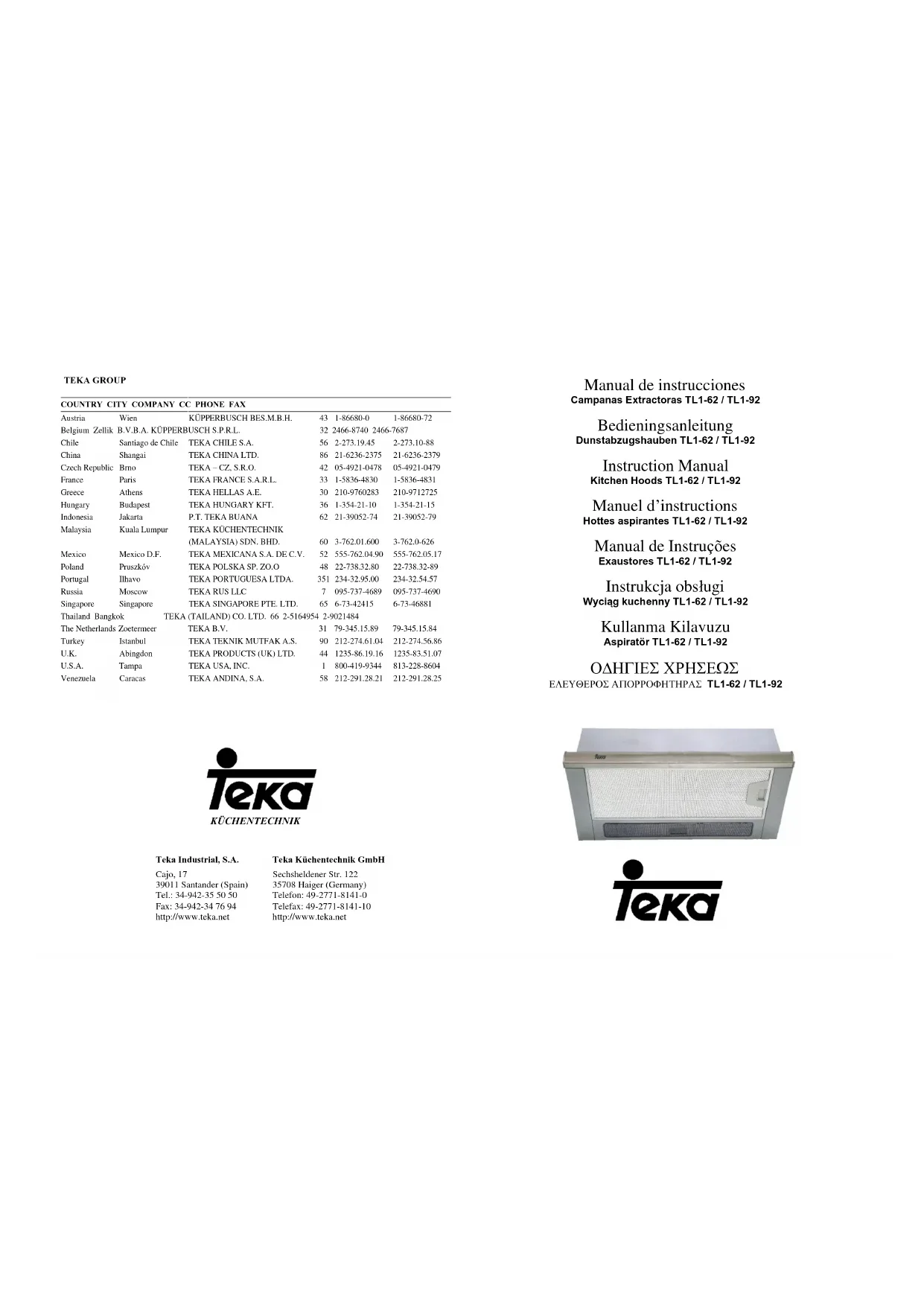 Retrouvez gratuitement la notice de l'appareil TL1 62 TEKA au format PDF.