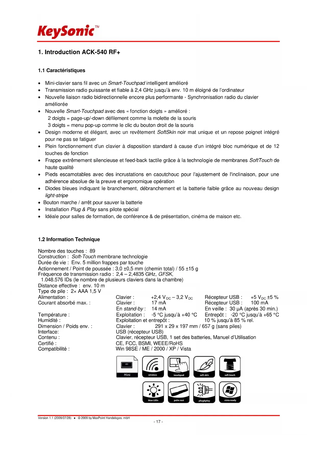 ACK540RF+ - Clavier KeySonic - Notice d'utilisation et mode d'emploi gratuit