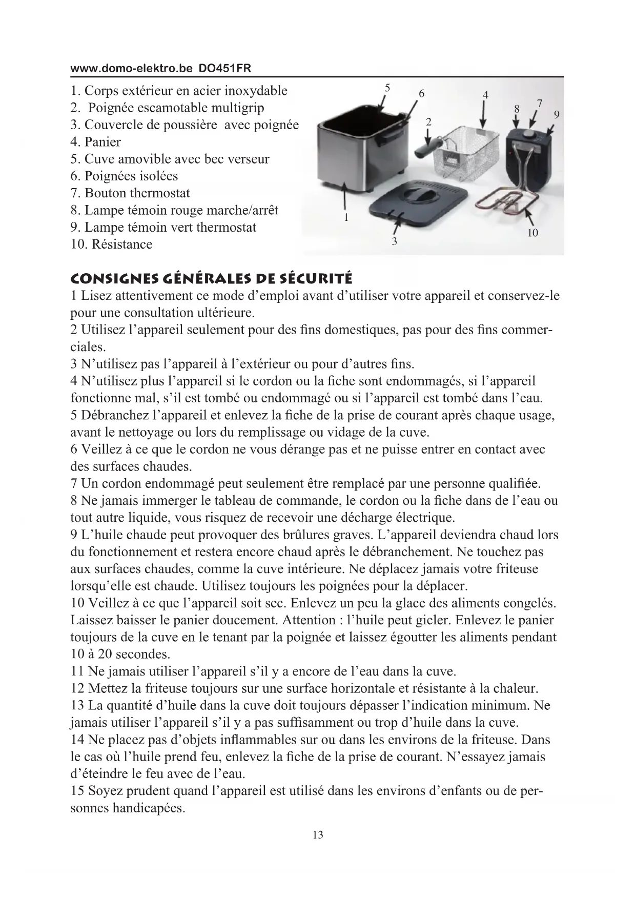DO451FR - Friteuse DOMO - Notice d'utilisation et mode d'emploi gratuit