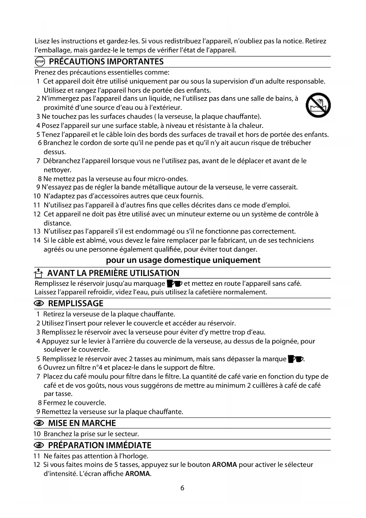 3 Ne touchez pas les surfaces chaudes ( la verseuse, la plaque chauffante).