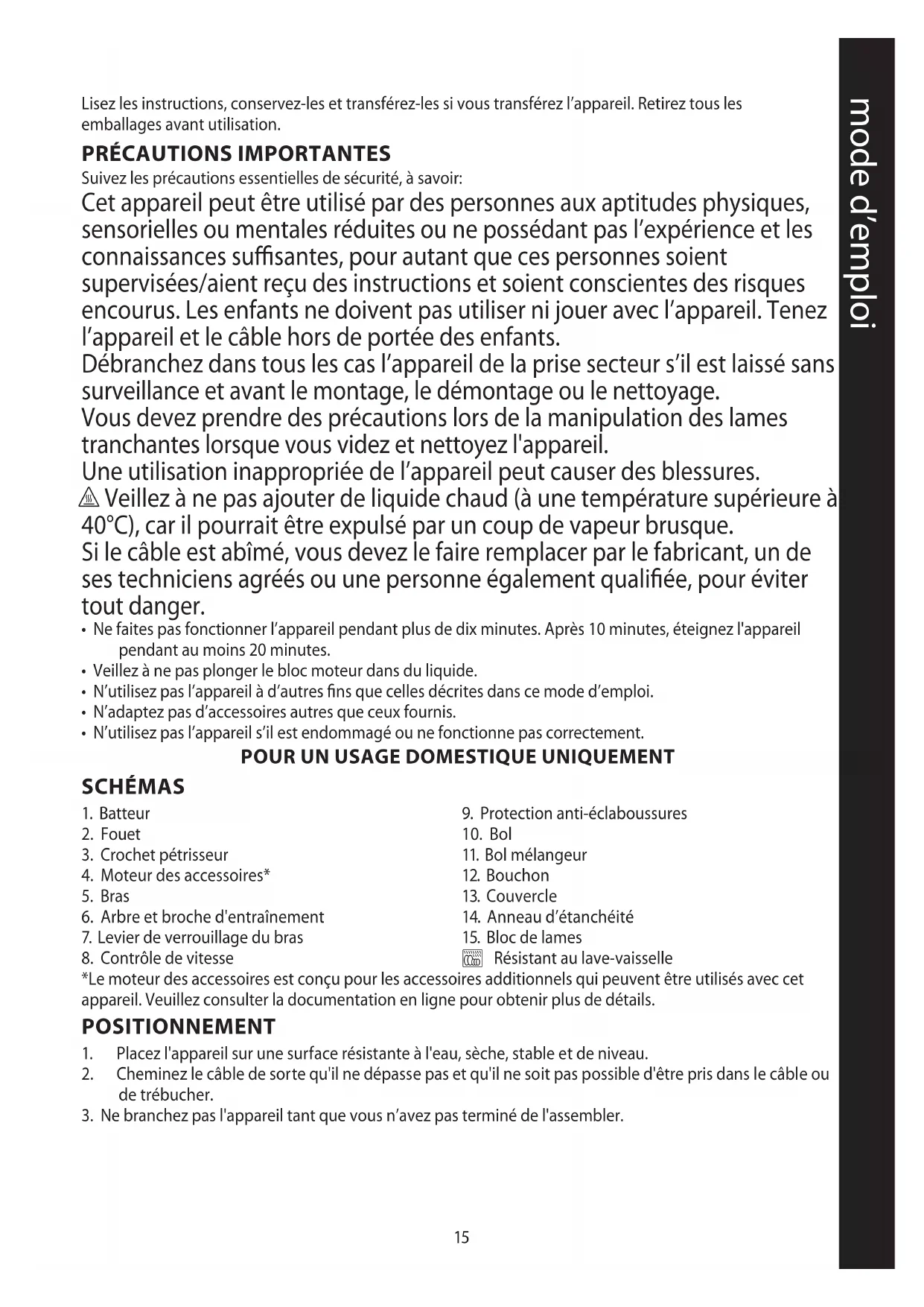 PRÉCAUTIONS IMPORTANTES Suivez les précautions essentielles de sécurité, à savoir: