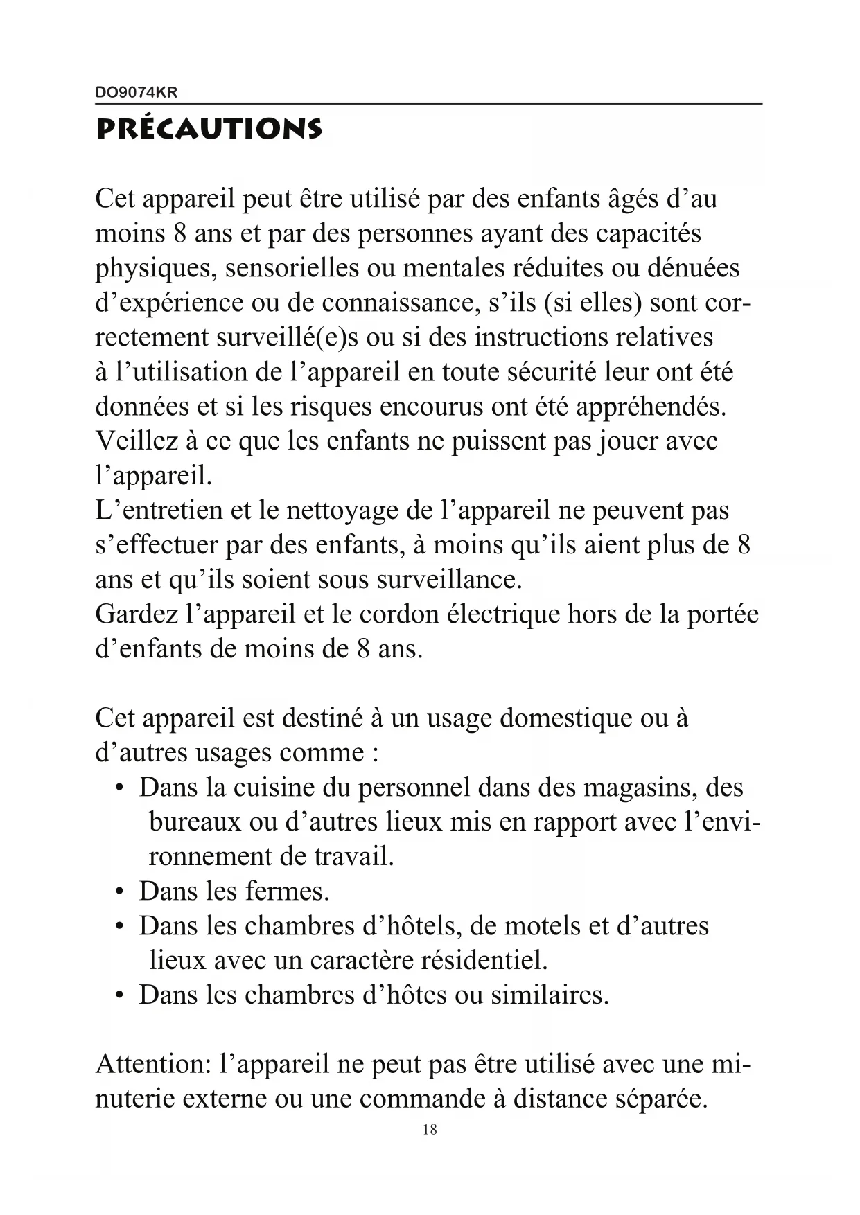 Retrouvez gratuitement la notice de l'appareil DO9074KR DOMO au format PDF.