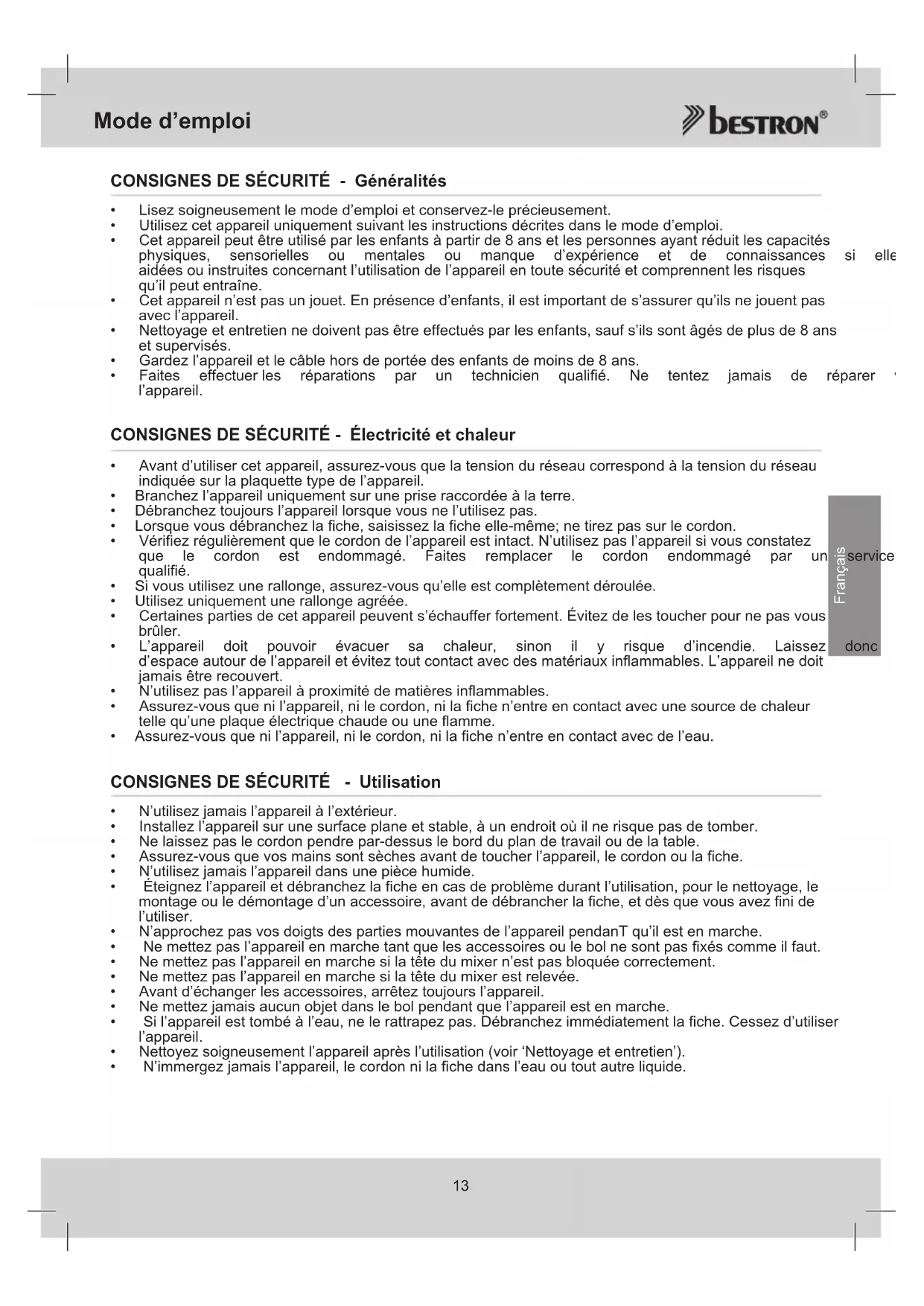 AKM500SD - Mixeur plongeant BESTRON - Notice d'utilisation et mode d'emploi gratuit