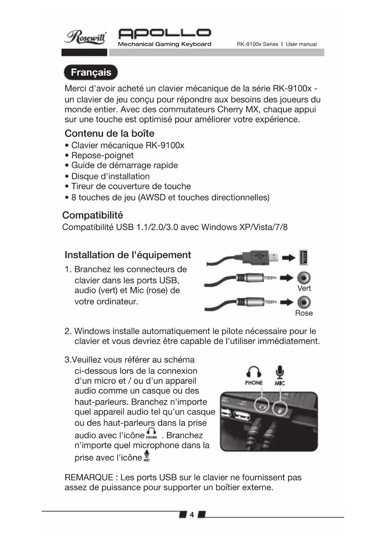 MODE D'EMPLOI RK9100xR Rosewill