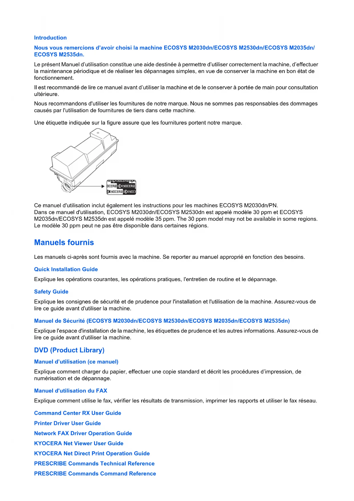Nous vous remercions d’avoir choisi la machine ECOSYS M2030dn/ECOSYS M2530dn/ECOSYS M2035dn/