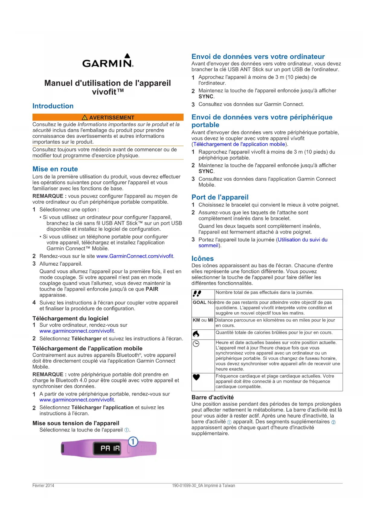 Retrouvez gratuitement la notice de l'appareil vívofit GARMIN au format PDF.