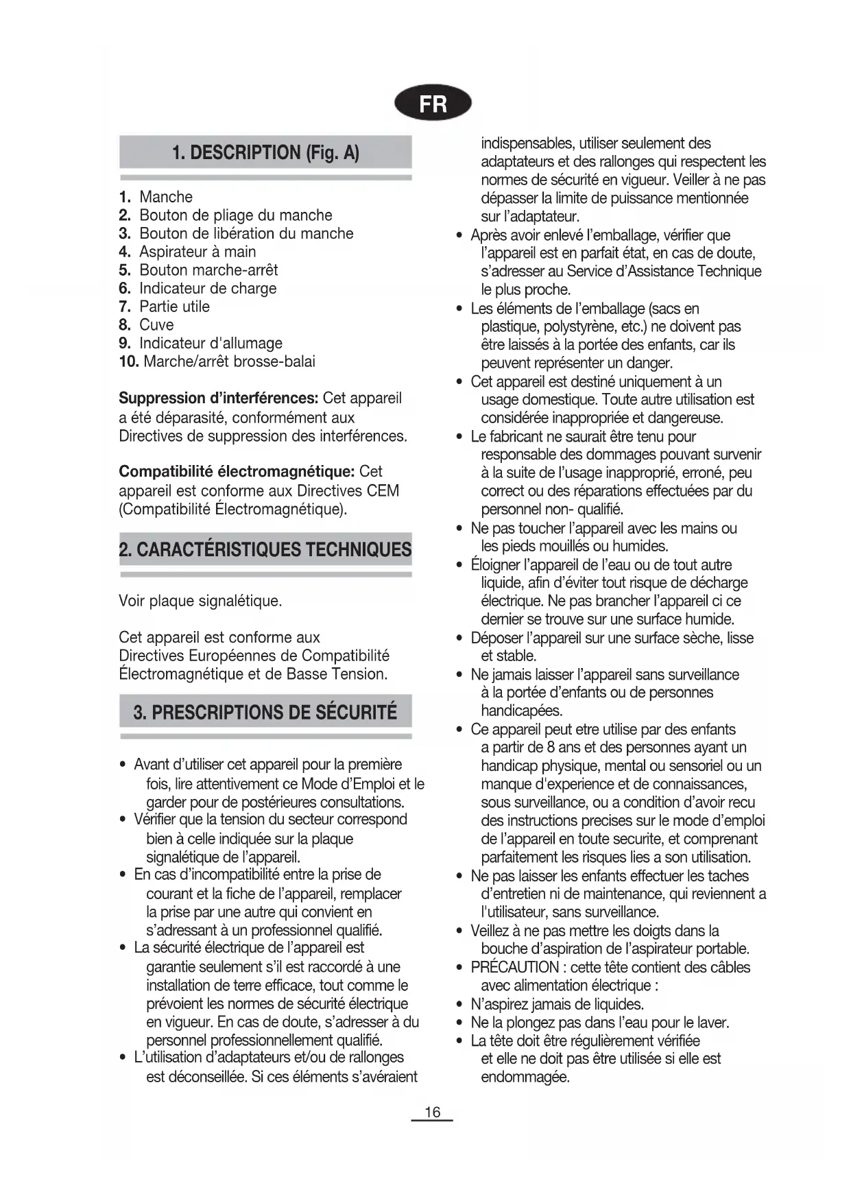- Ce appareil peut etre utilise par des enfants a partir de 8 ans et des personnes ayant un handicap physique, mental ou sensoriel ou un manque d'experience et de connaissances, sous surveillance, ou a condition d’avoir recu des instructions precises sur le mode d’emploi de l’appareil en toute securite, et comprenant parfaitement les risques lies a son utilisation.