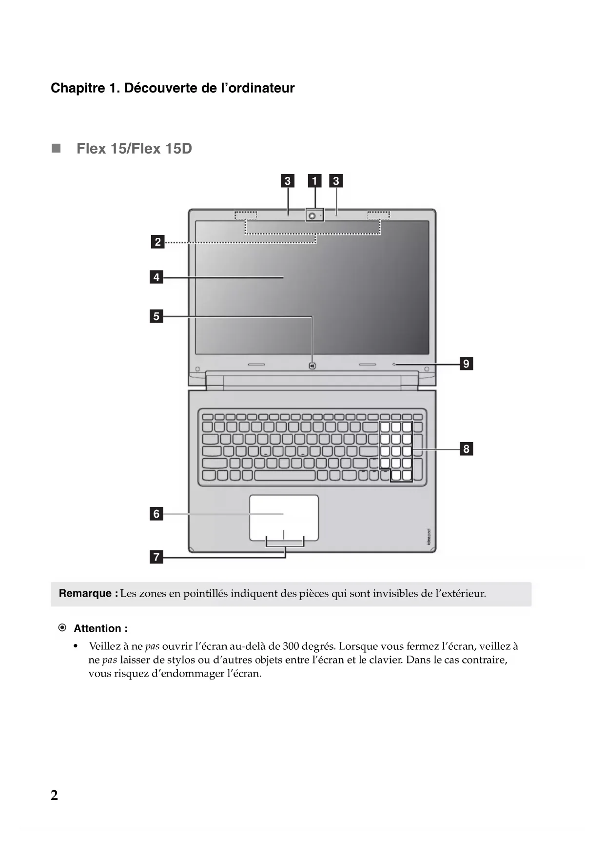 Flex 15/Flex 15D Remarque : Les zones en pointillés indiquent des pièces qui sont invisibles de l’extérieur.