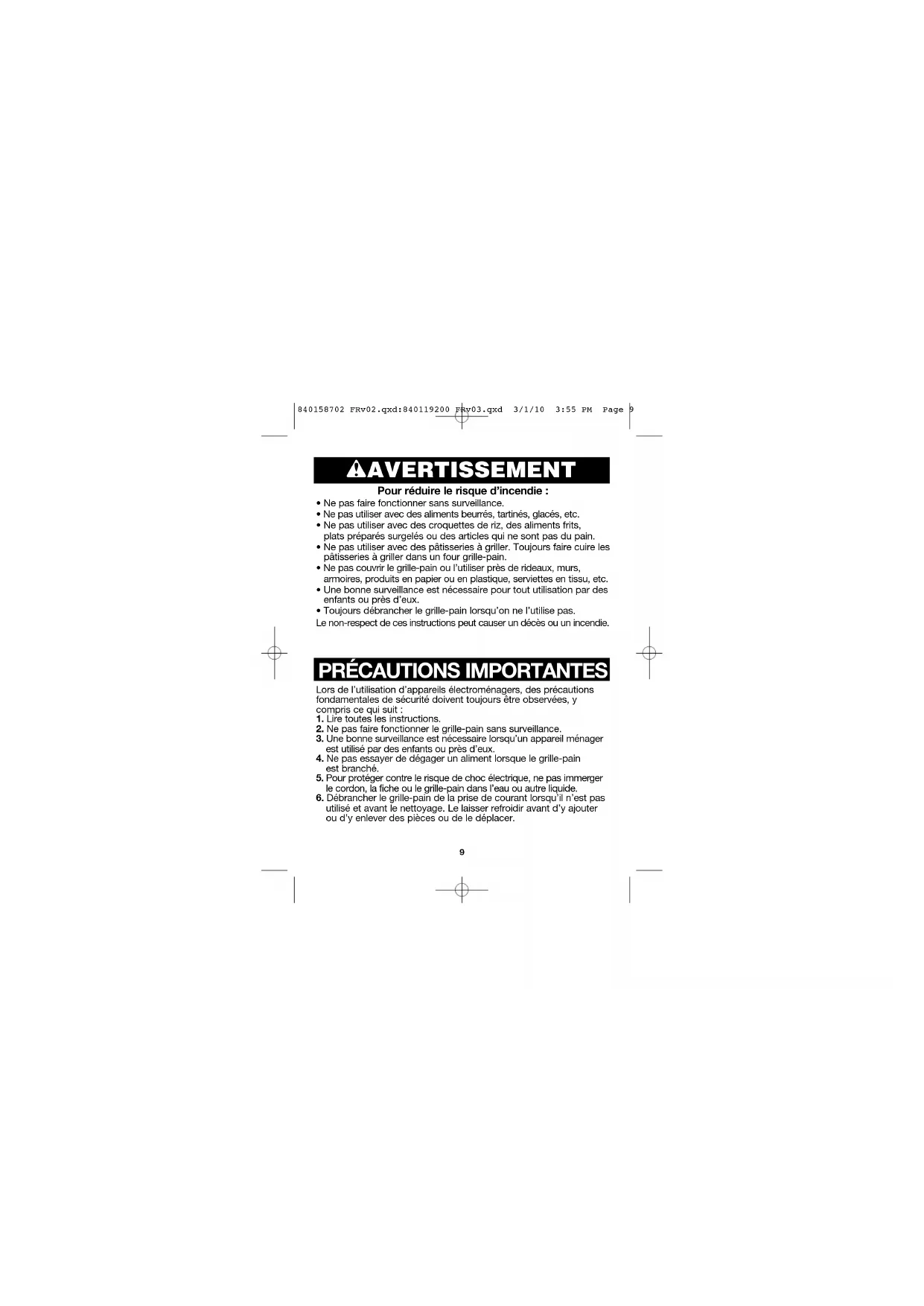 2. Ne pas faire fonctionner le grille-pain sans surveillance.