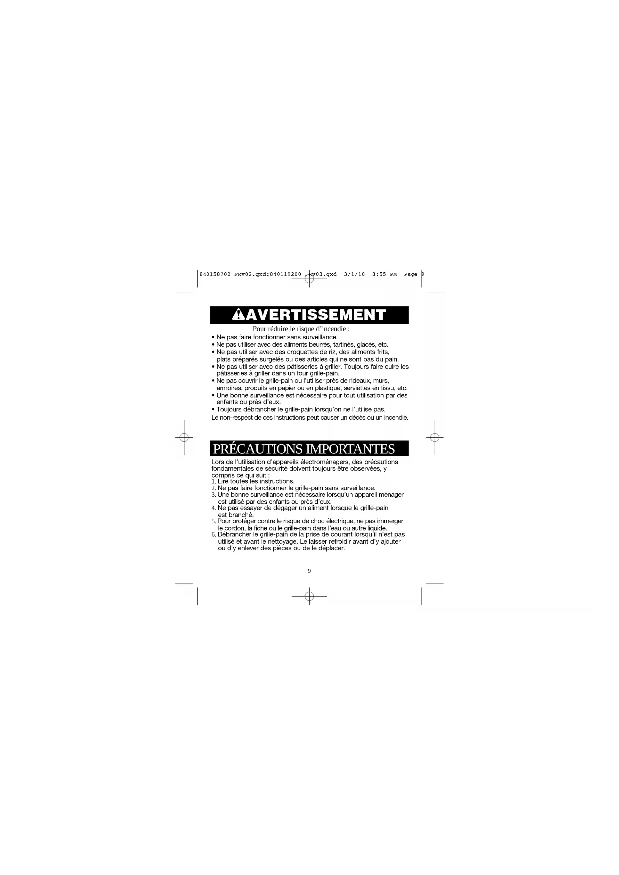 10. Un incendie peut survenir si le grille-pain est recouvert ou en