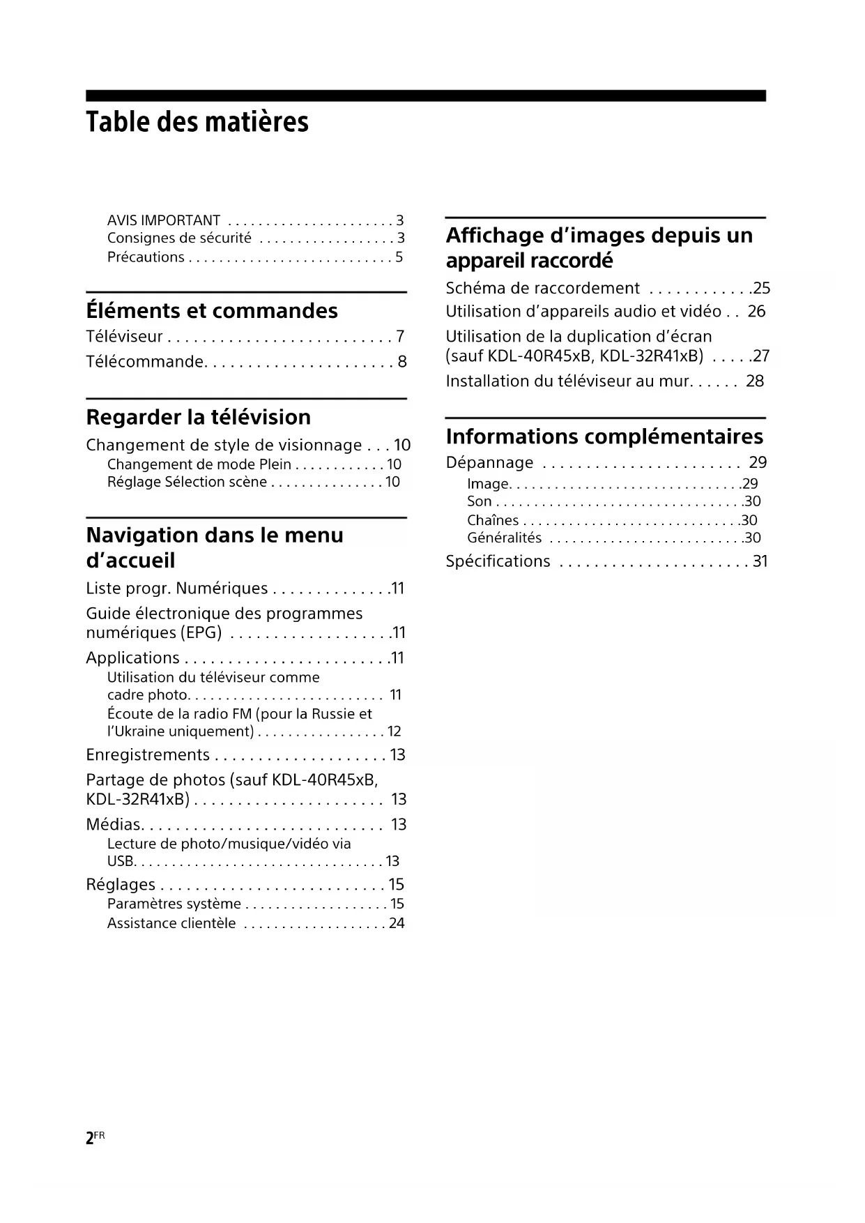 (sauf KDL-40R45xB, KDL-32R41xB) . . . . .27