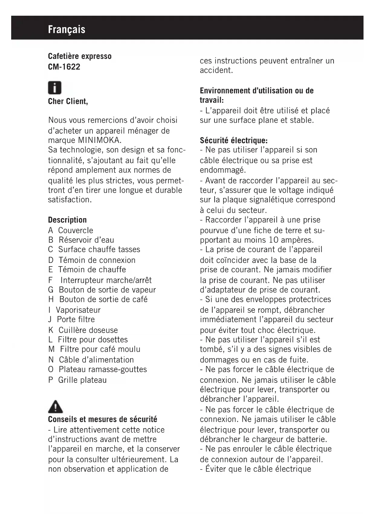 CM1622 - Machine à café Minimoka - Notice d'utilisation et mode d'emploi gratuit
